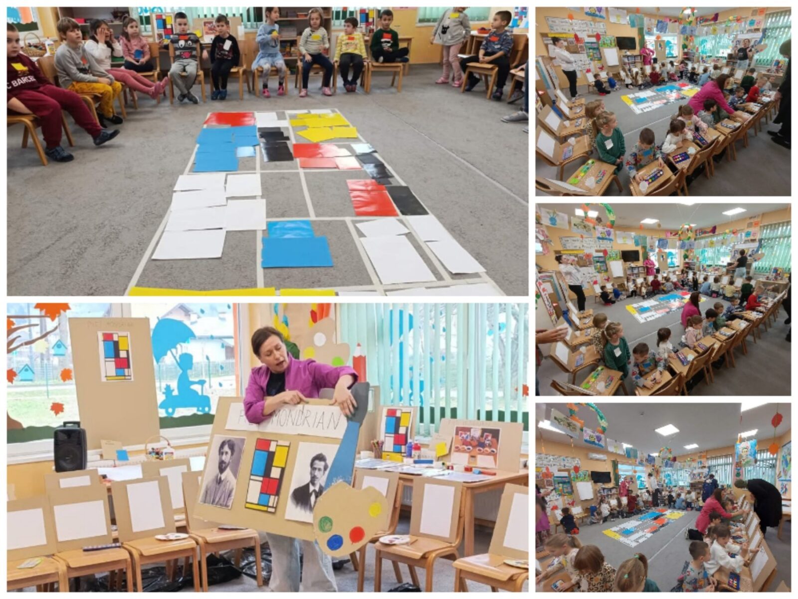 🎨 Ogledna aktivnost pod nazivom Mali slikari Piet Mondrian, koju je realizovala odgajateljica Lejla Tufekčić iz vrtića “Radost”, pružila je djeci iz odgojne gruope od 3 godine do polaska u školu priliku da istraže svijet umjetnosti kroz kreativni likovni izražaj. Kroz ovu aktivnost, organizovanu u sklopu mjesečne teme “Umjetnost“, djeca su razvijala finu motoriku, osjećaj za prostor, estetsko izražavanje i sposobnost prepoznavanja osnovnih boja i oblika. Kroz različite likovne tehnike, mališani su imali priliku istražiti vlastitu kreativnost i unaprijediti osjećaj za timski rad.