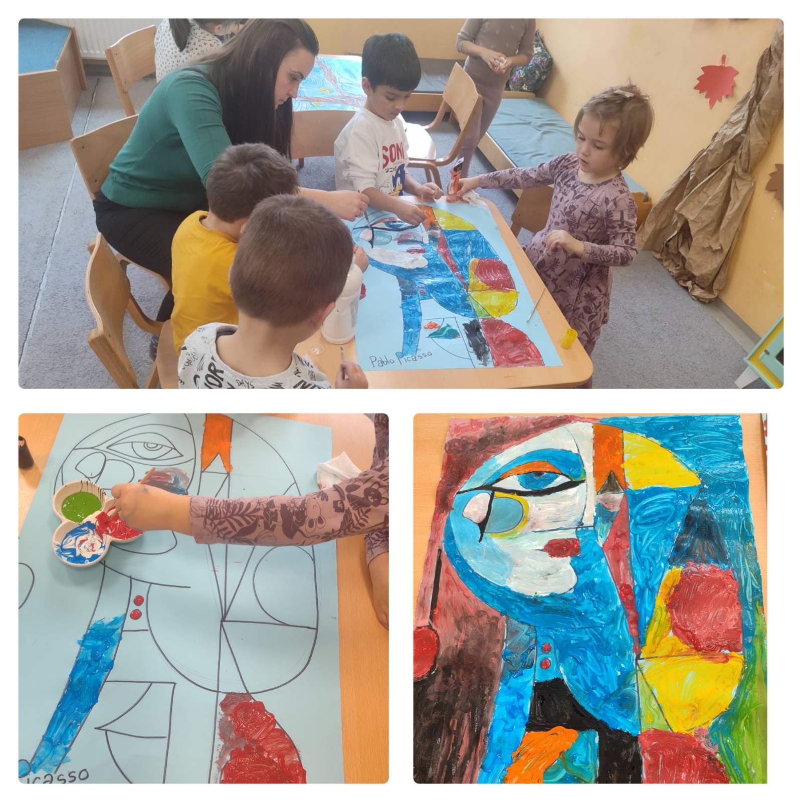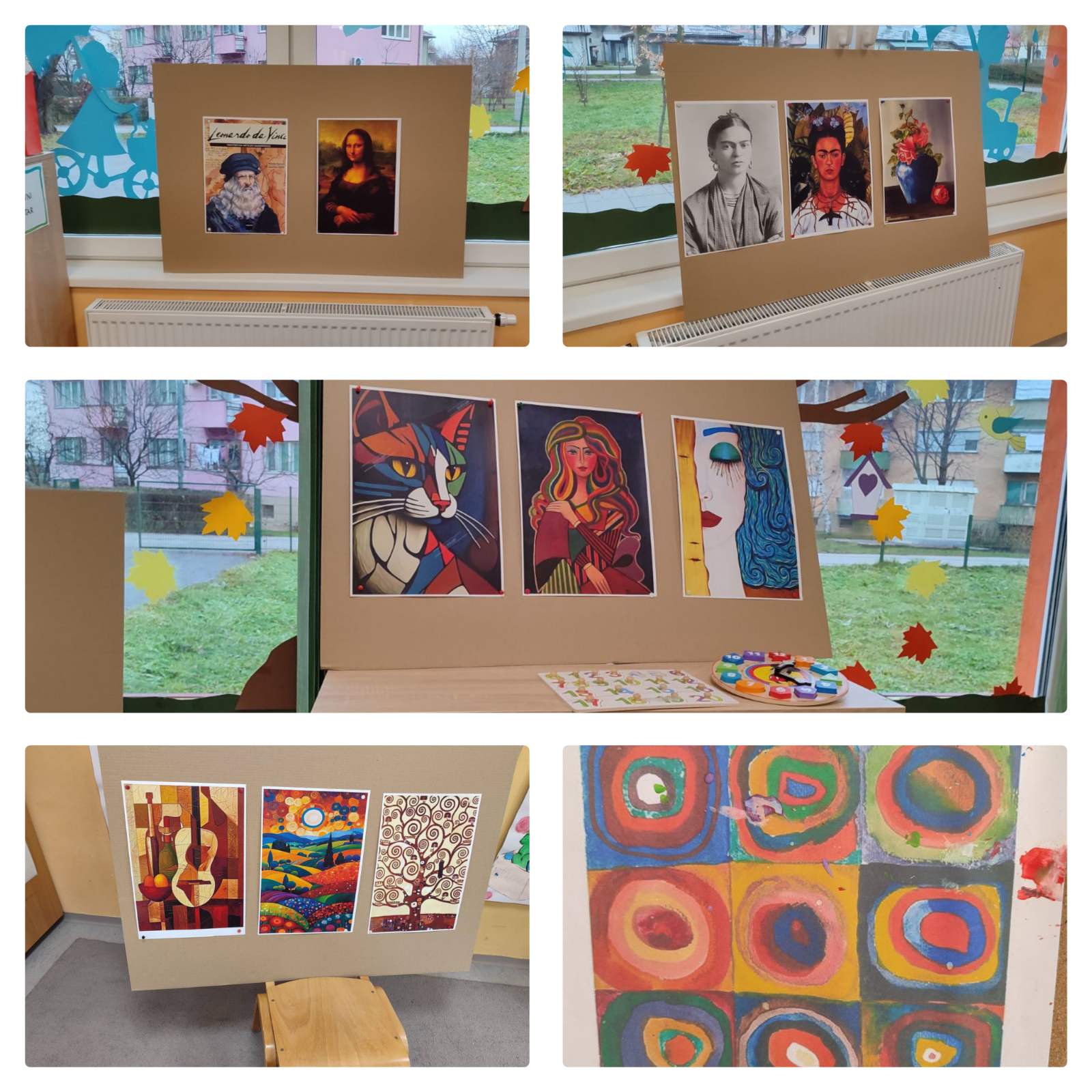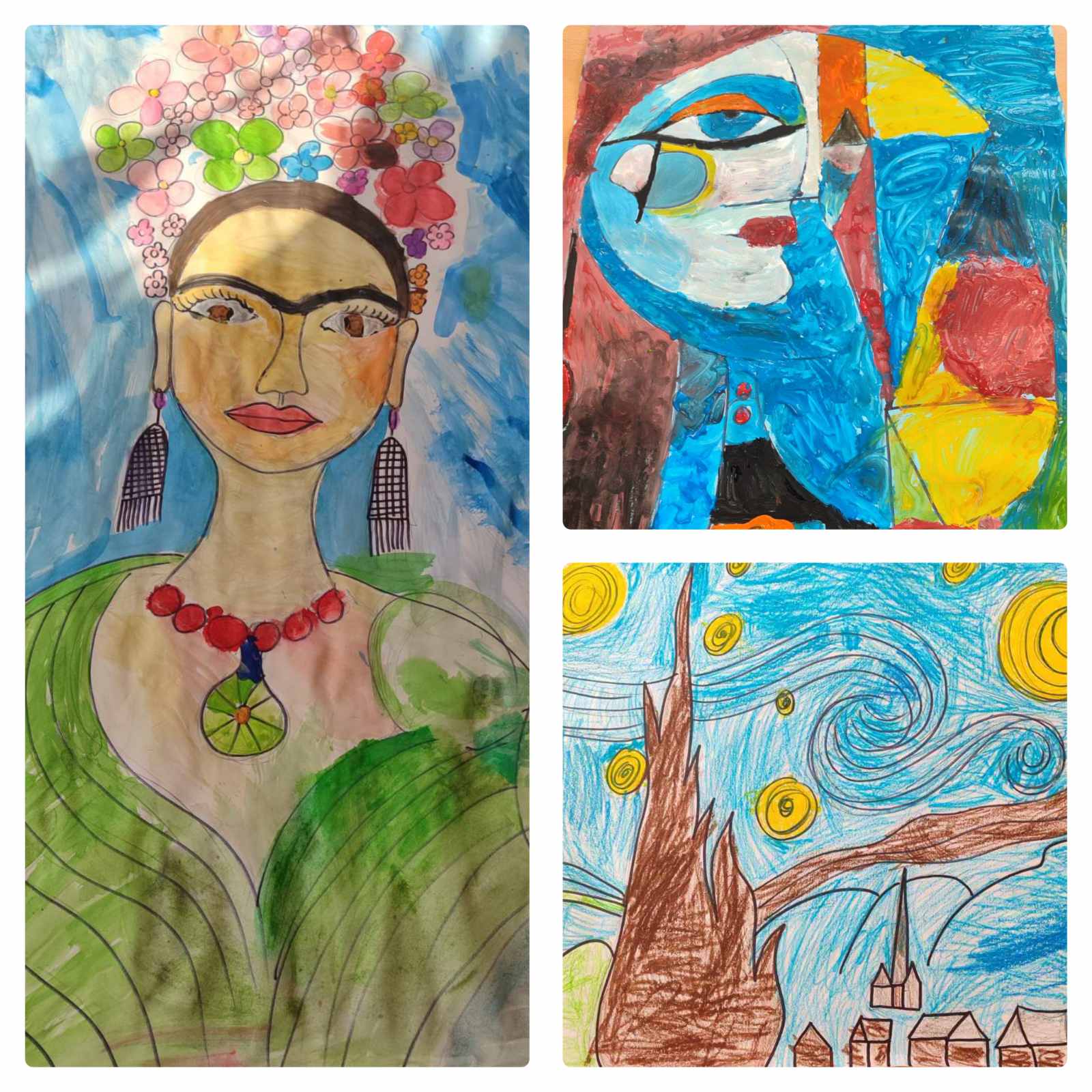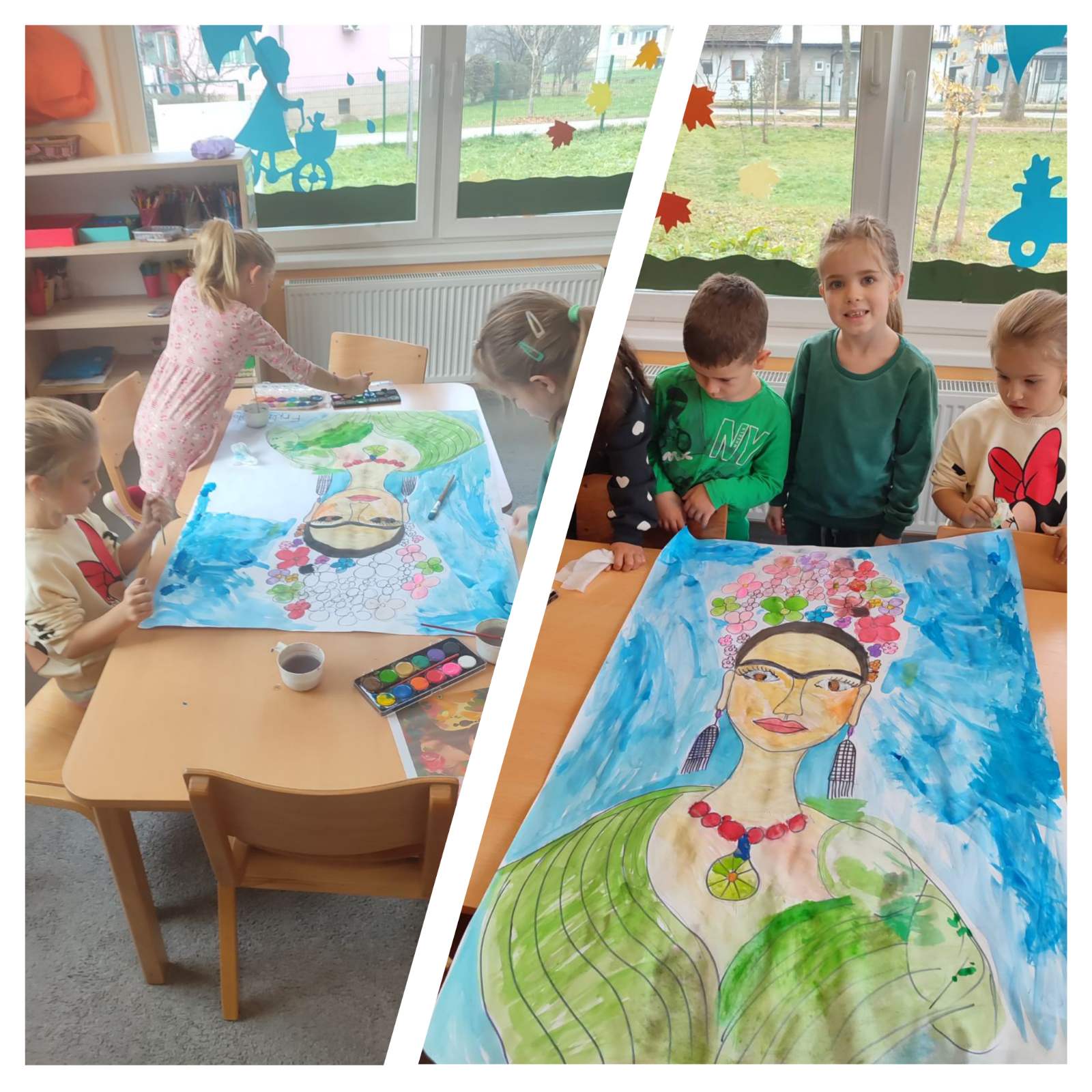 🖌️ Aktivnosti je prethodilo upoznavanje djece s likovnim tehnikama i materijalima kroz djela velikih slikara, čime su razvijali divergentno mišljenje, maštovitost, slobodan likovni izraz i estetski doživljaj. Djecu su posebno oduševila djela Vincenta van Gogha, poput Zvjezdana noć i Suncokreti, te radovi Fride Kahlo. Kroz djela Vasilija Kandinskog mališani su, osim likovne umjetnosti, istraživali geometrijske oblike poput kruga i kvadra, što je dodatno obogatilo njihovo iskustvo.