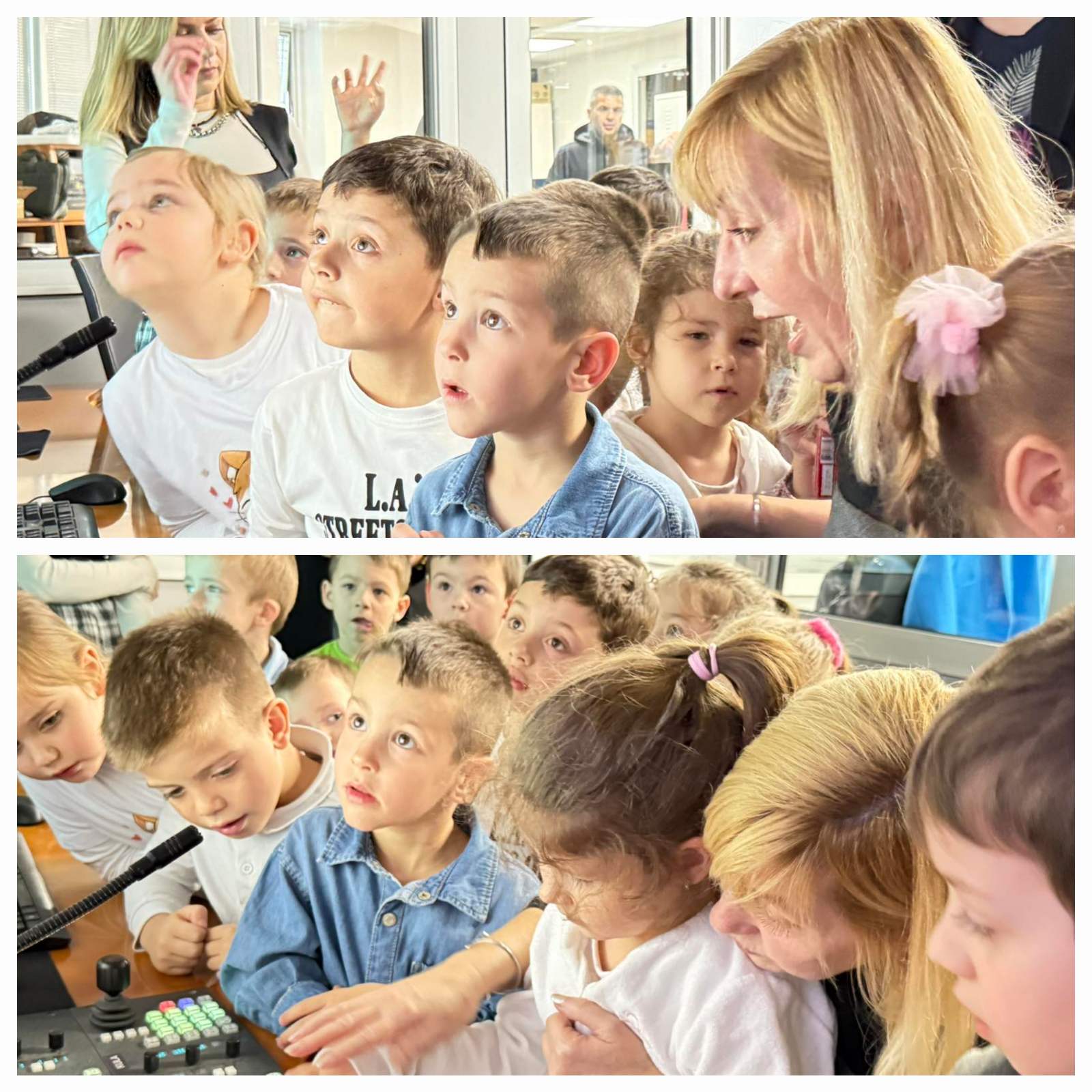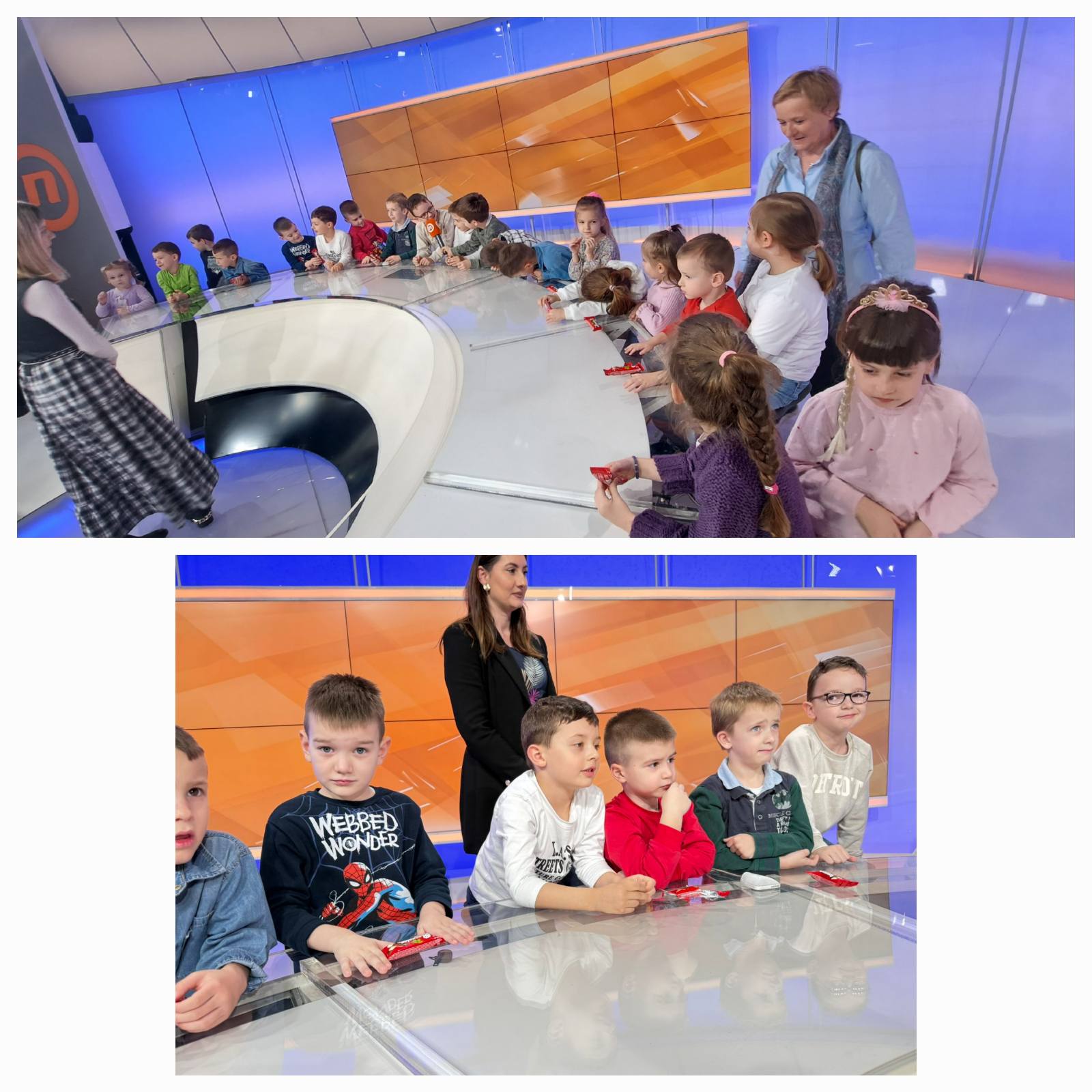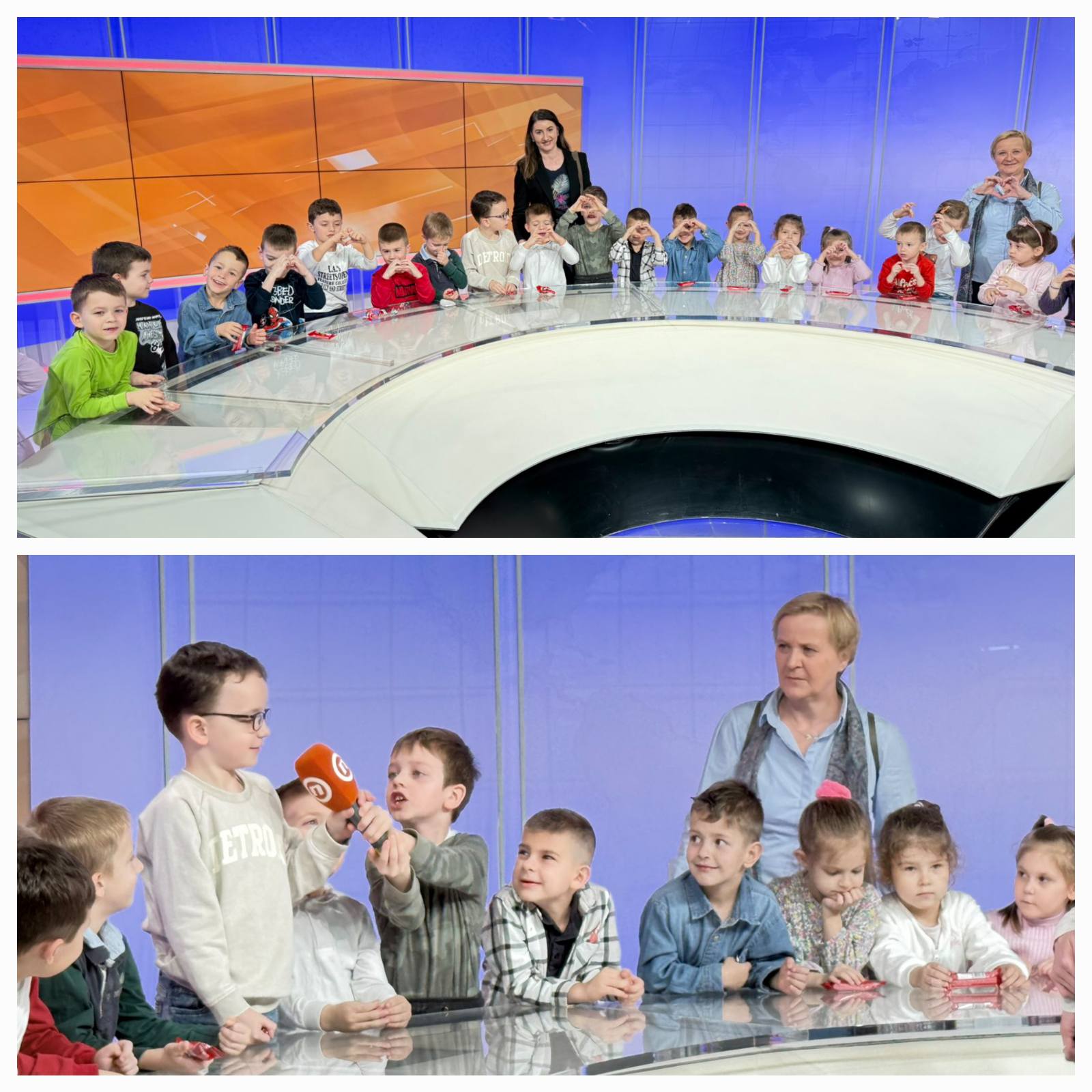 🎬Mališani su s oduševljenjem istraživali televizijski studio, a posebno su ih impresionirali reflektori, kamere i mikrofoni. S obzirom na njihovu ljubav prema javnim nastupima, hrabro su recitovali, pjevali i okušali se u ulozi  voditelja, doživljavajući jedinstveno iskustvo ispred kamera.