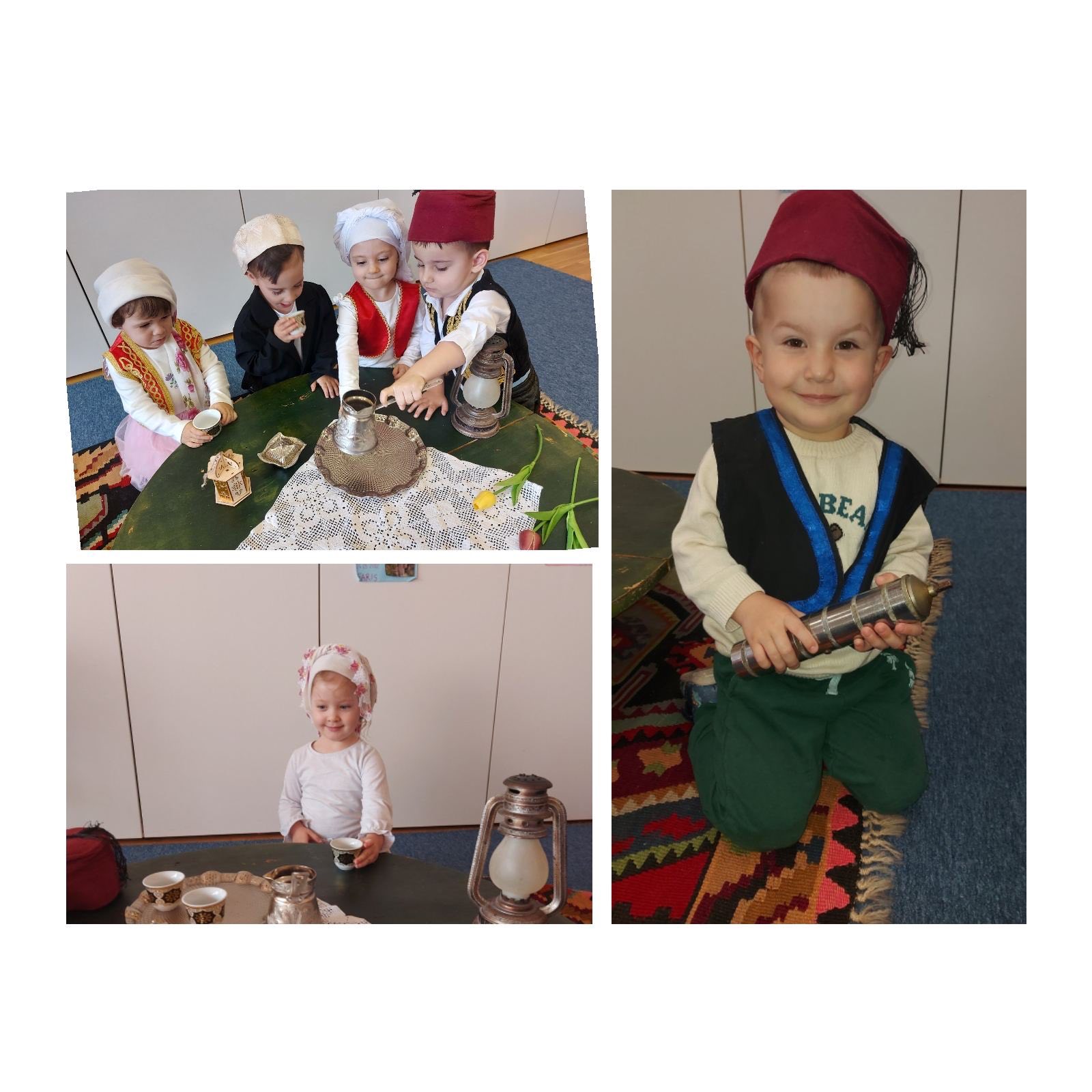 💫 U odgojnoj grupi djece od 2 do 3 godine života, uz podršku odgajateljice Midhete Tihić, mališani su imali priliku osjetiti i obući narodnu nošnju, upoznati se s kulturom naroda BiH te istražiti tradicionalne predmete koji se i danas koriste. Posebno zanimljiv trenutak bilo je zajedničko druženje s djecom starije grupe, koja su kroz interakciju opisivala i dodatno upoznavala tradiciju. U praksi je poznato da međusobno druženje djece različitih uzrasta ima pozitivan uticaj na njihov razvoj, što smo ovom prilikom i iskoristili.