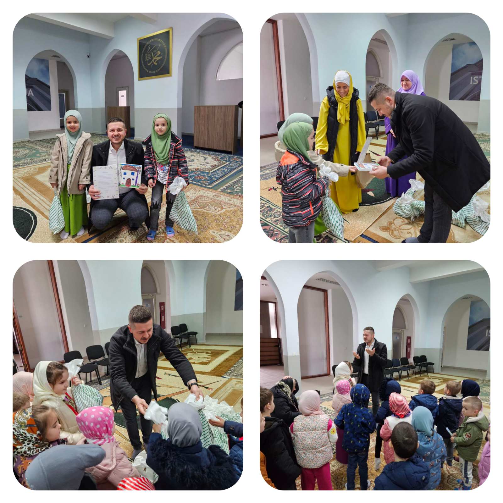 🧑🤝🧑👭 Djeca iz vrtića “ŽIŠ” imala su priliku da osjete duh Bajrama kroz posjetu Istiklal džamiji. Kroz igru i učenje, zajedno s mualimom su učestvovala u kreativnoj radionici, a potom pažljivo slušala kratko predavanje efendije prilagođeno njihovom uzrastu. Na kraju posjete, radost je upotpunjena podjelom paketića, donoseći osmijehe na dječija lica.
