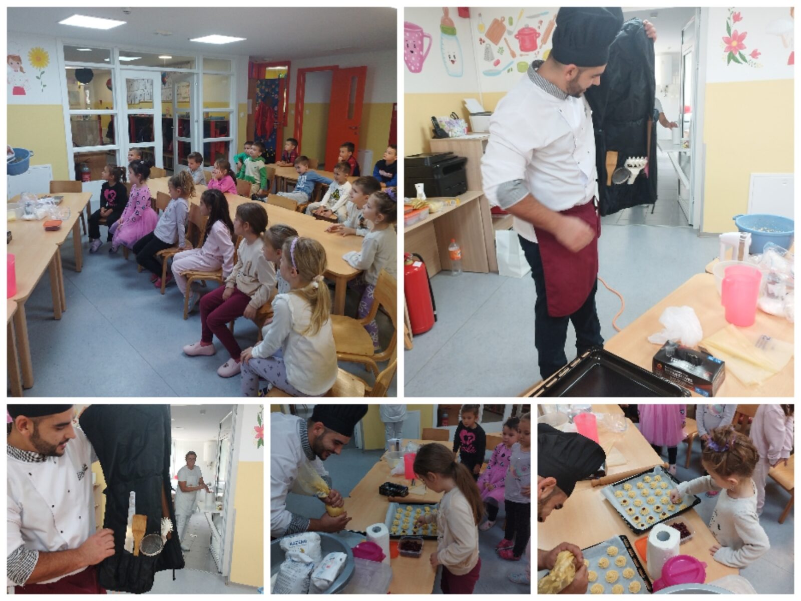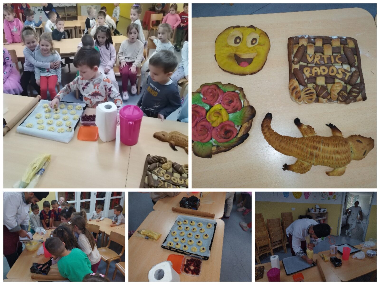 🍪 U sklopu podteme „Zanimanja u ishrani“ danas smo u vrtiću „Radost“ ugostili pekara Adija Salai. Djeca su imala priliku da se upoznaju s opremom koju pekar koristi u svakodnevnom radu, kao i s različitim materijalima i sredstvima potrebnim za pripremu ukusnih peciva i kolača.