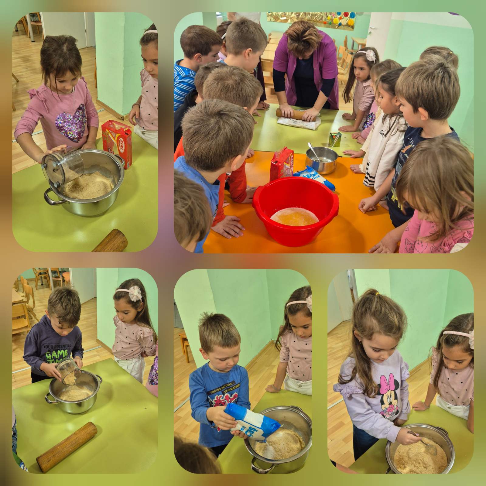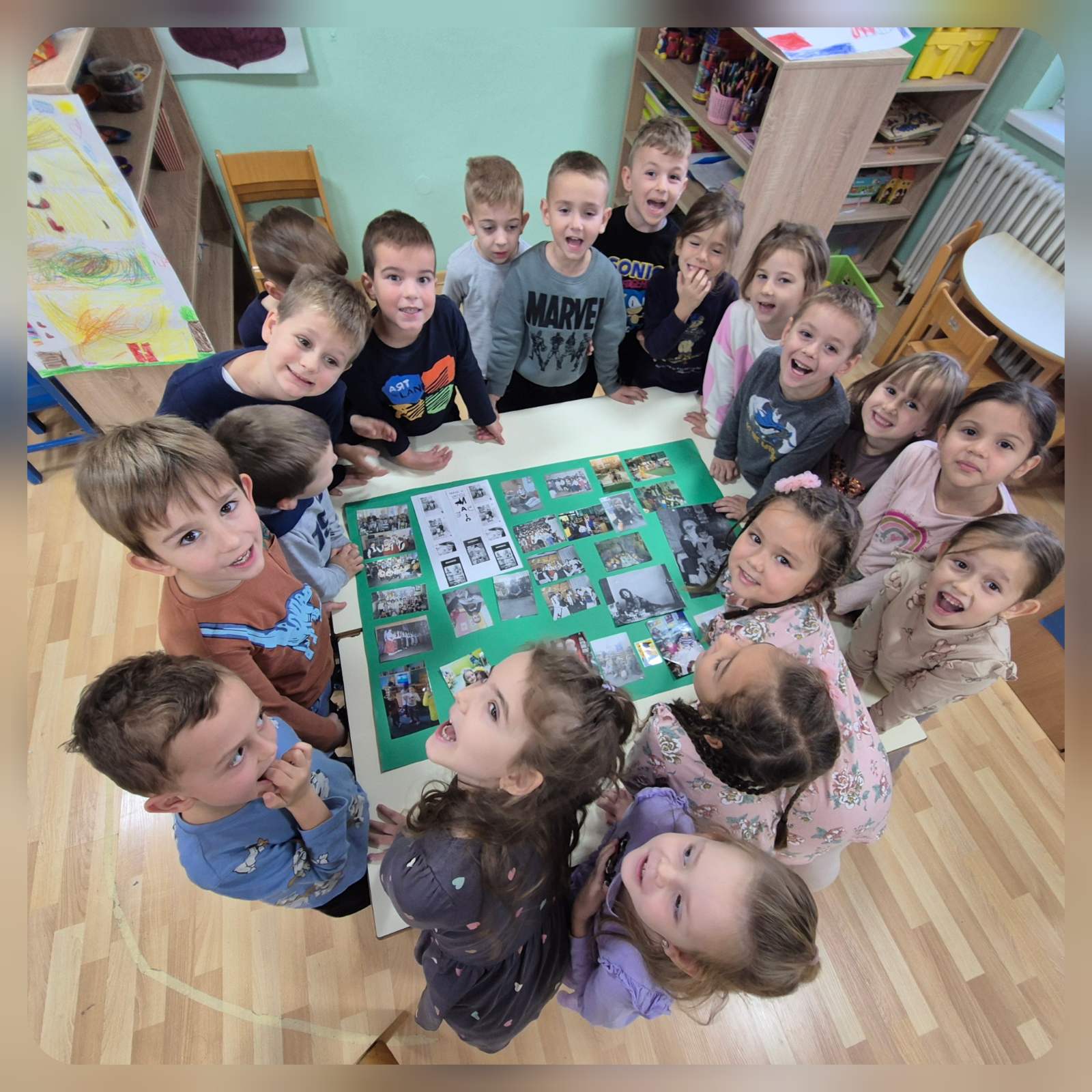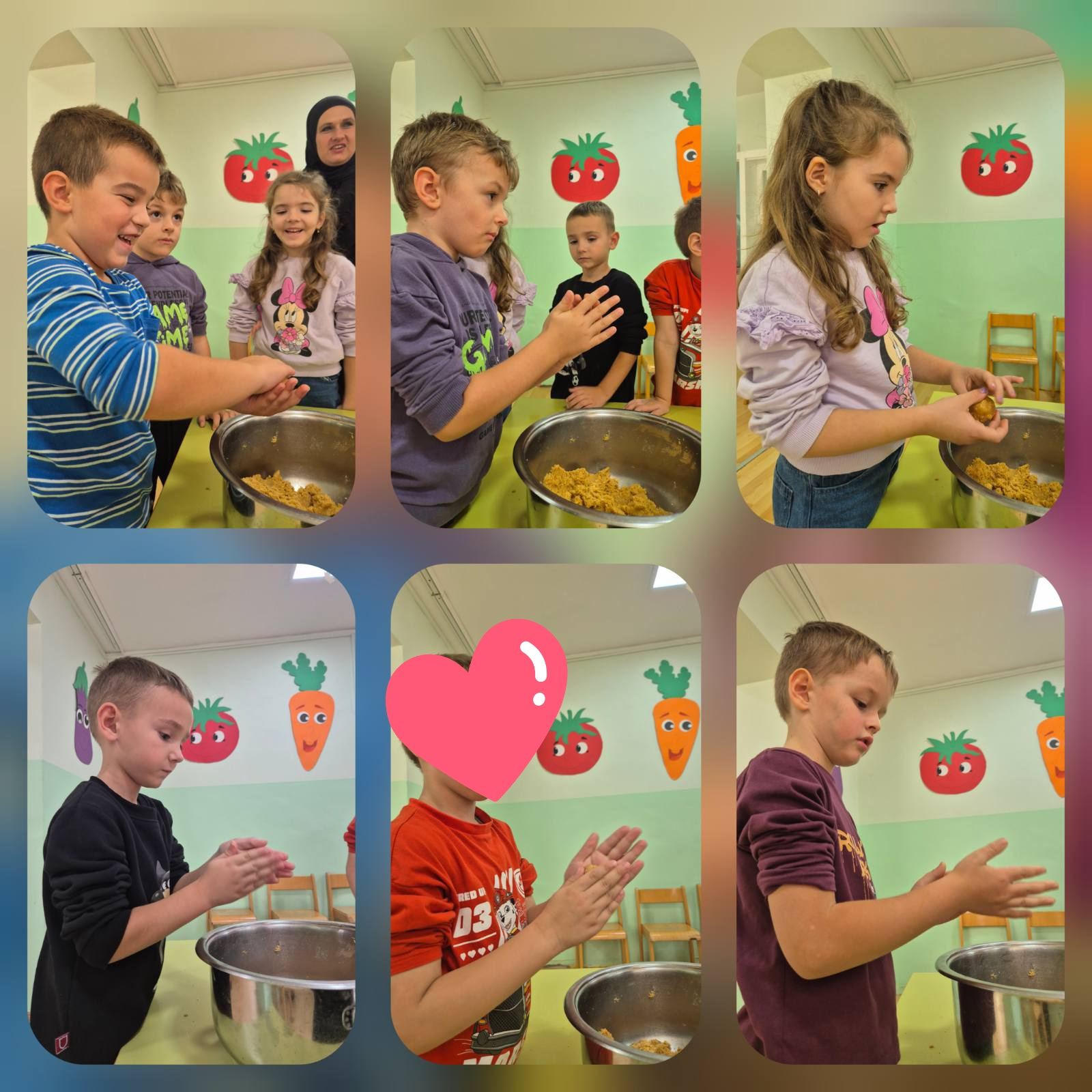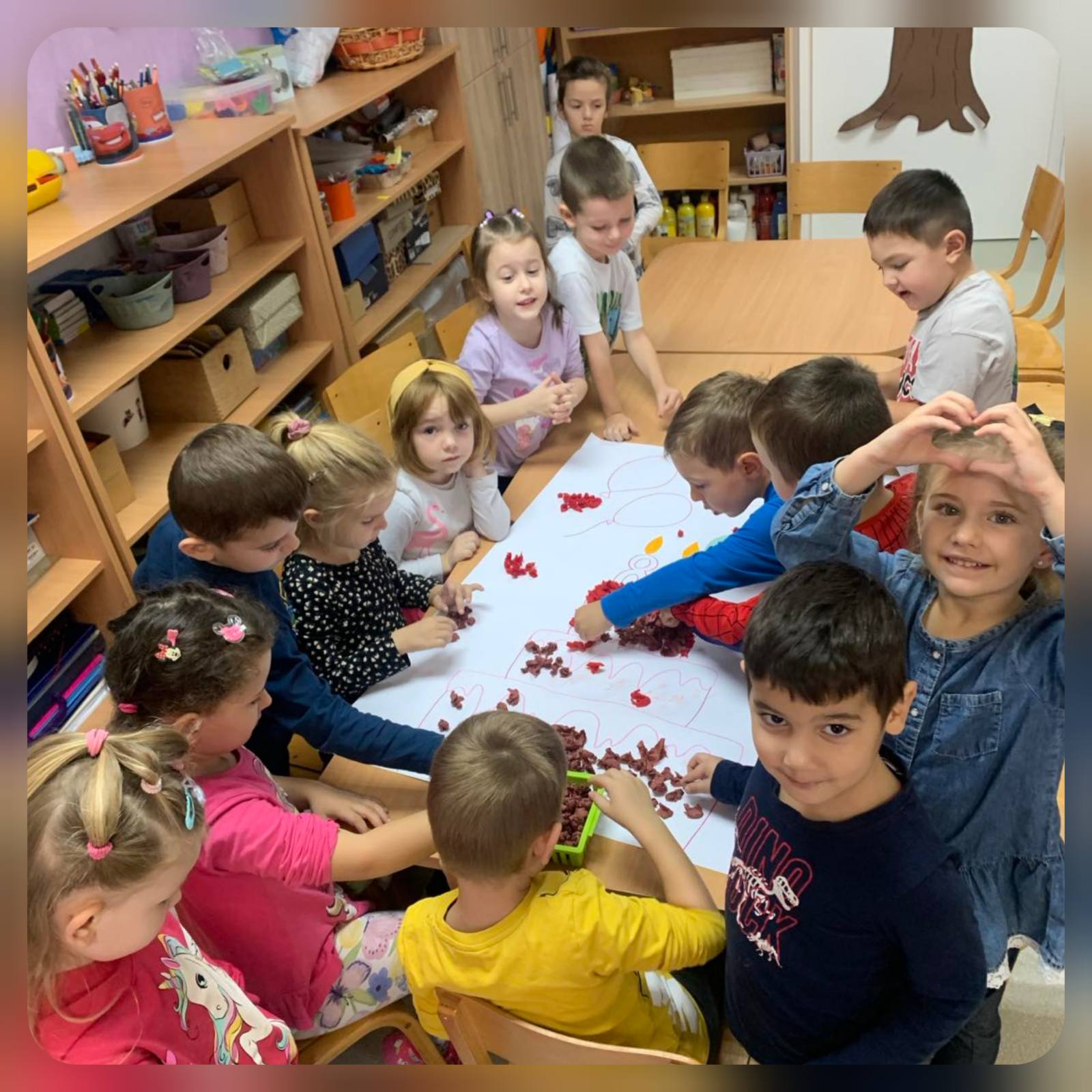Naši mališani su s puno ljubavi pravili ukusne kolače od keksa, a zatim izradili posebnu rođendansku čestitku ukrašenu crtežima svog vrtića i drugara. Također, djeca su napravila veliki zajednički čart na kojem su lijepila svoje fotografije iz vrtića, ali i slike roditelja kada su oni bili vrtićka djeca — kao i fotografije braće i sestara. ❤️