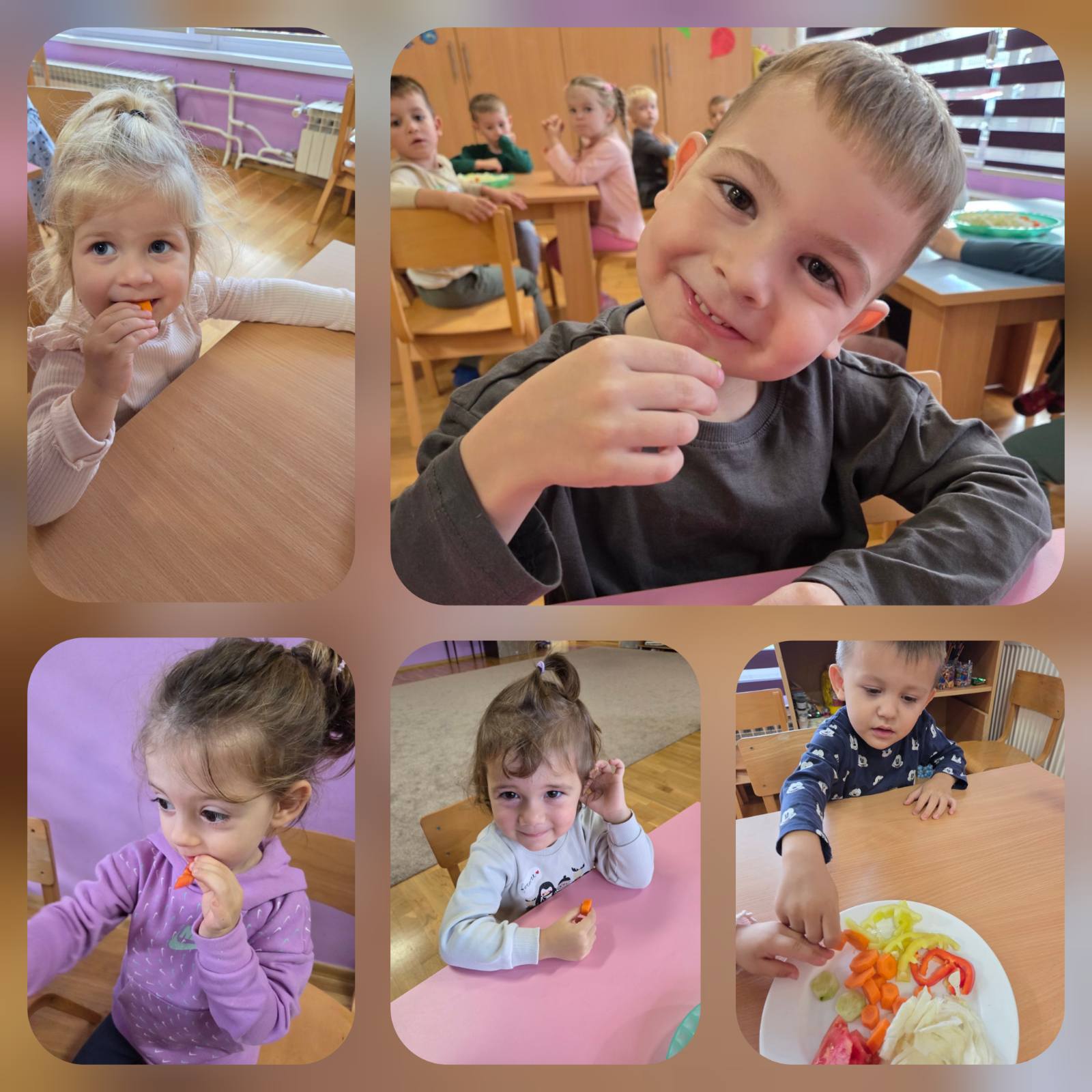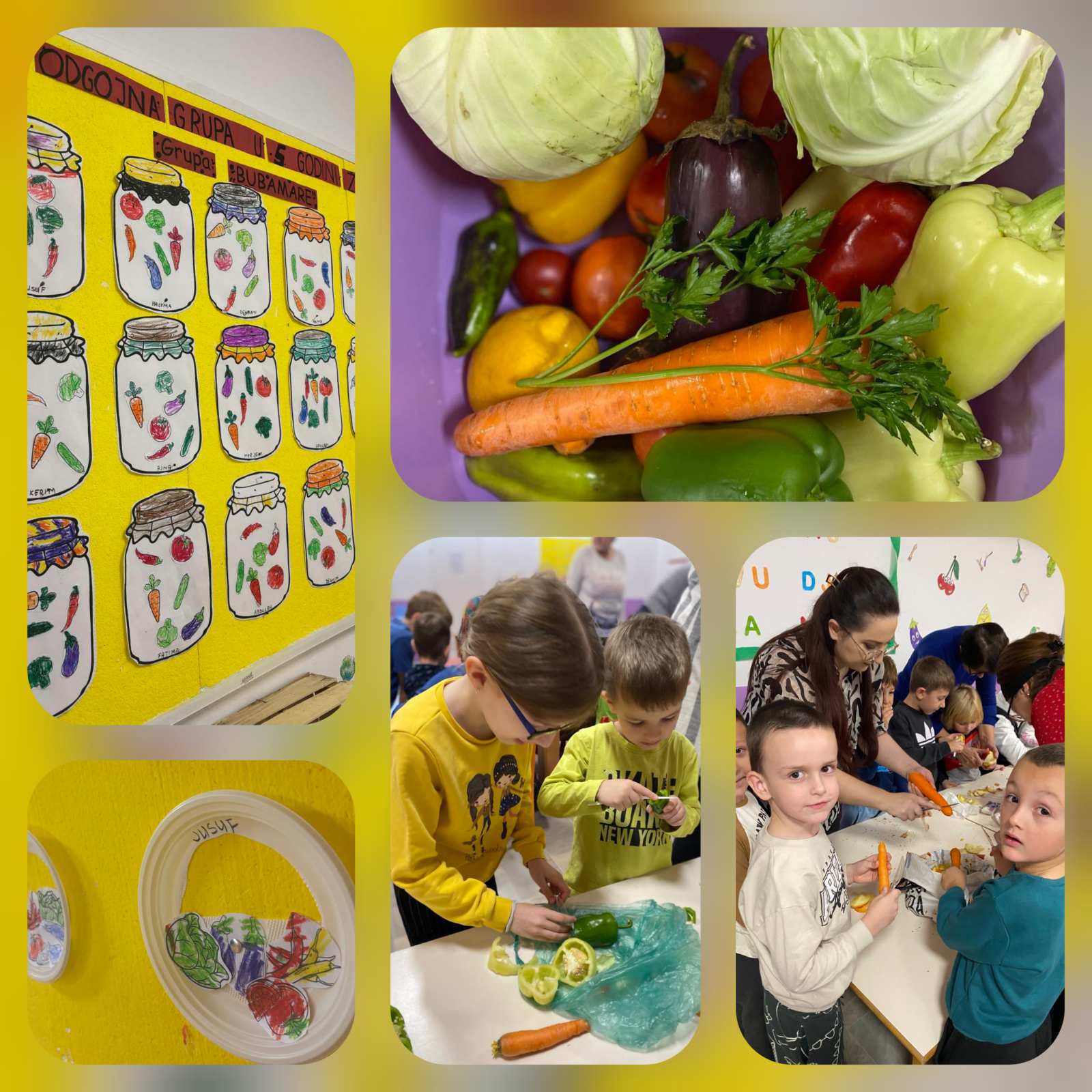 Djeca u četvrtoj godini života, zajedno sa svojim odgajateljicama, posjetila su pijacu i naučila da je to mjesto na kojem “stanuje povrće” kada se ubere iz bašte. Dočekali su ih ljubazni prodavači, a mališani su prepoznavali i imenovali različite vrste povrća, čak i one s kojima se ranije nisu susretali. Dobili su i ukusne mandarine, te kupili povrće za zimnicu. Tokom sedmice su povrće prali, sjeckali, stavljali u tegle i – što je najvažnije – s uživanjem ga konzumirali.