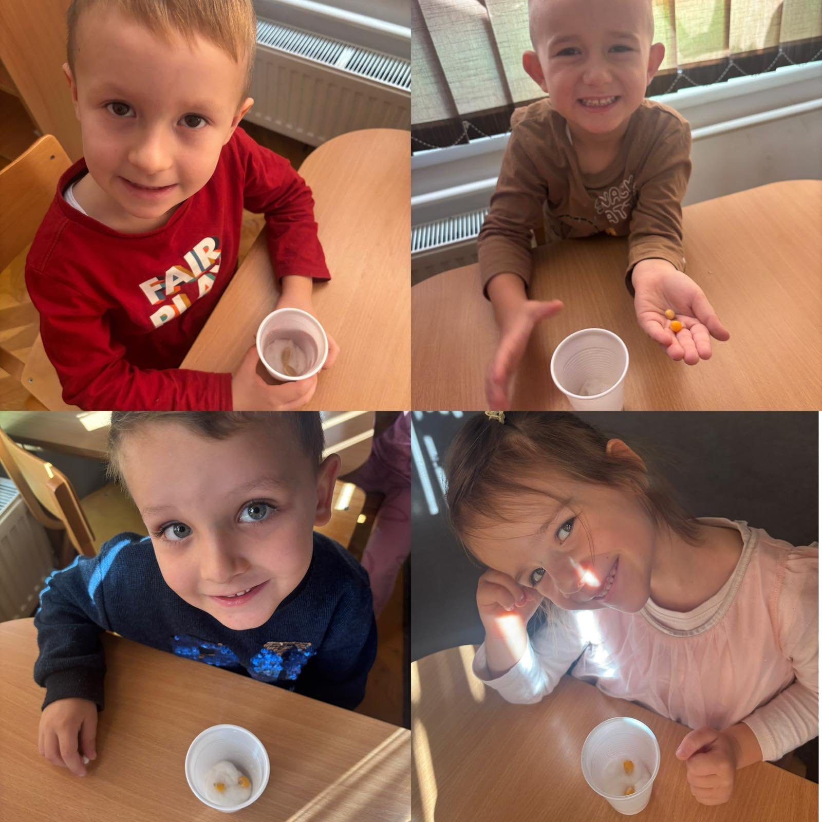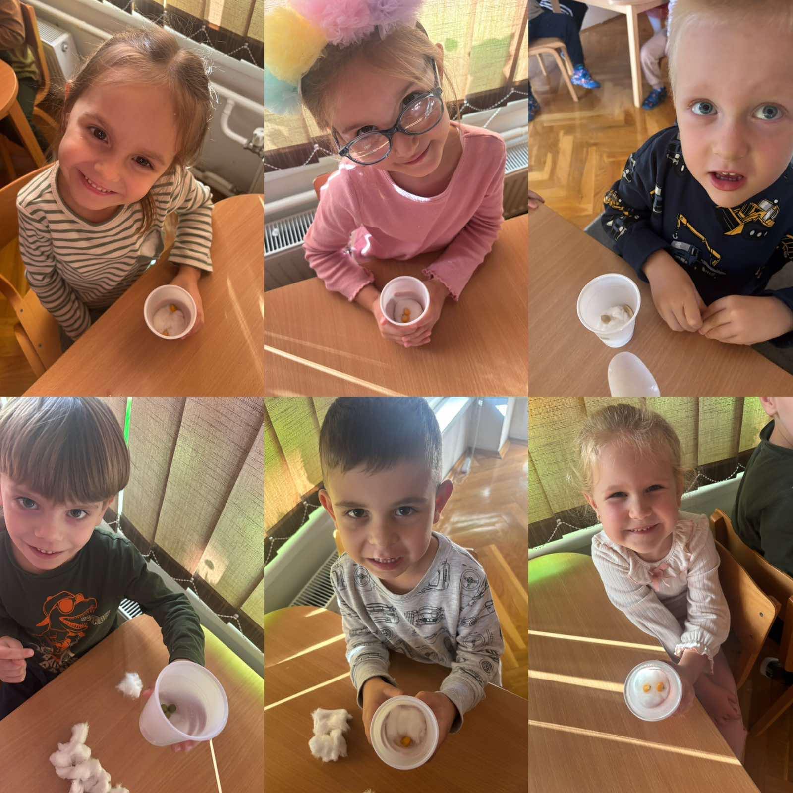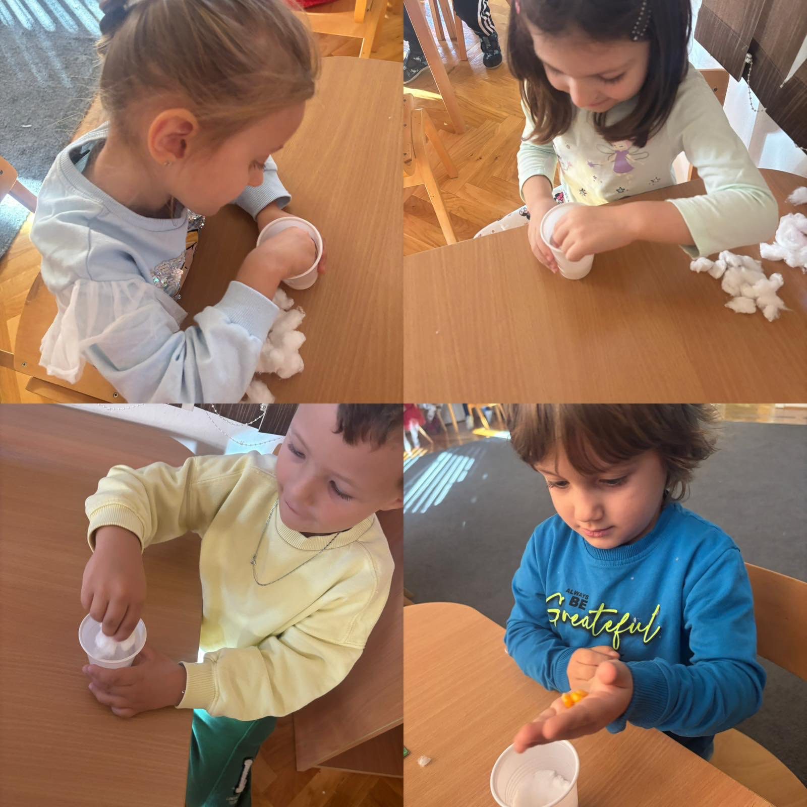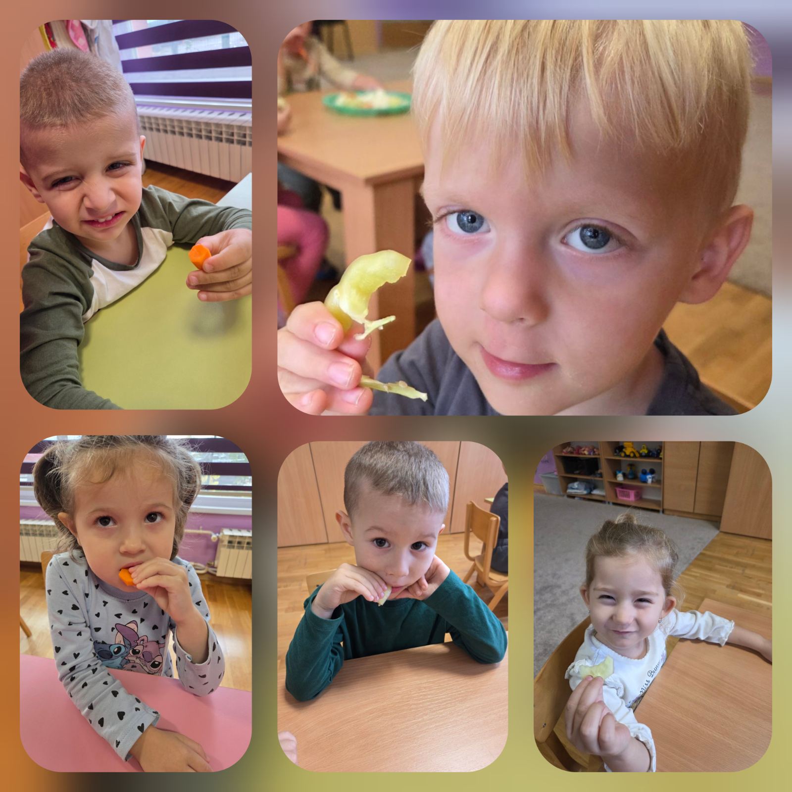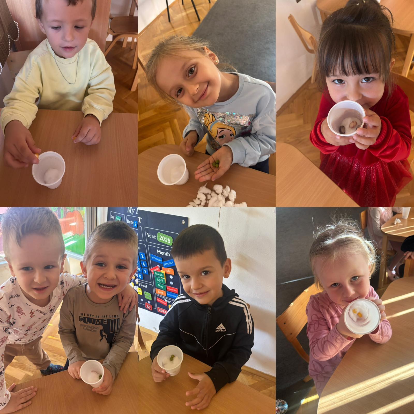 Djeca u petoj godini života ne samo da su istraživala povrće čulima, već su ga i posadila u čaše kako bi posmatrala proces rasta. Planiraju da rezultate svog malog eksperimenta prikažu drugarima iz drugih grupa naredne sedmice. Mališani su napravili i izložbu pod nazivom “Tanjir povrća”.
