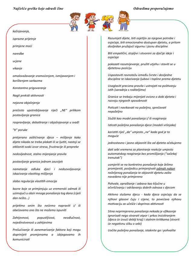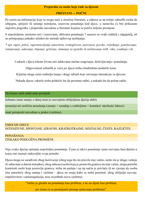 ✨U nastavku slijede preporuke za odrasle – preporučene smjernice u cilju sprečavanja ili umanjivanja neželjenih ponašanja te poticanja poželjnih ponašanja djece kroz povratne informacije, načine reagiranja i ponašanja odraslih koji rade sa djecom.
