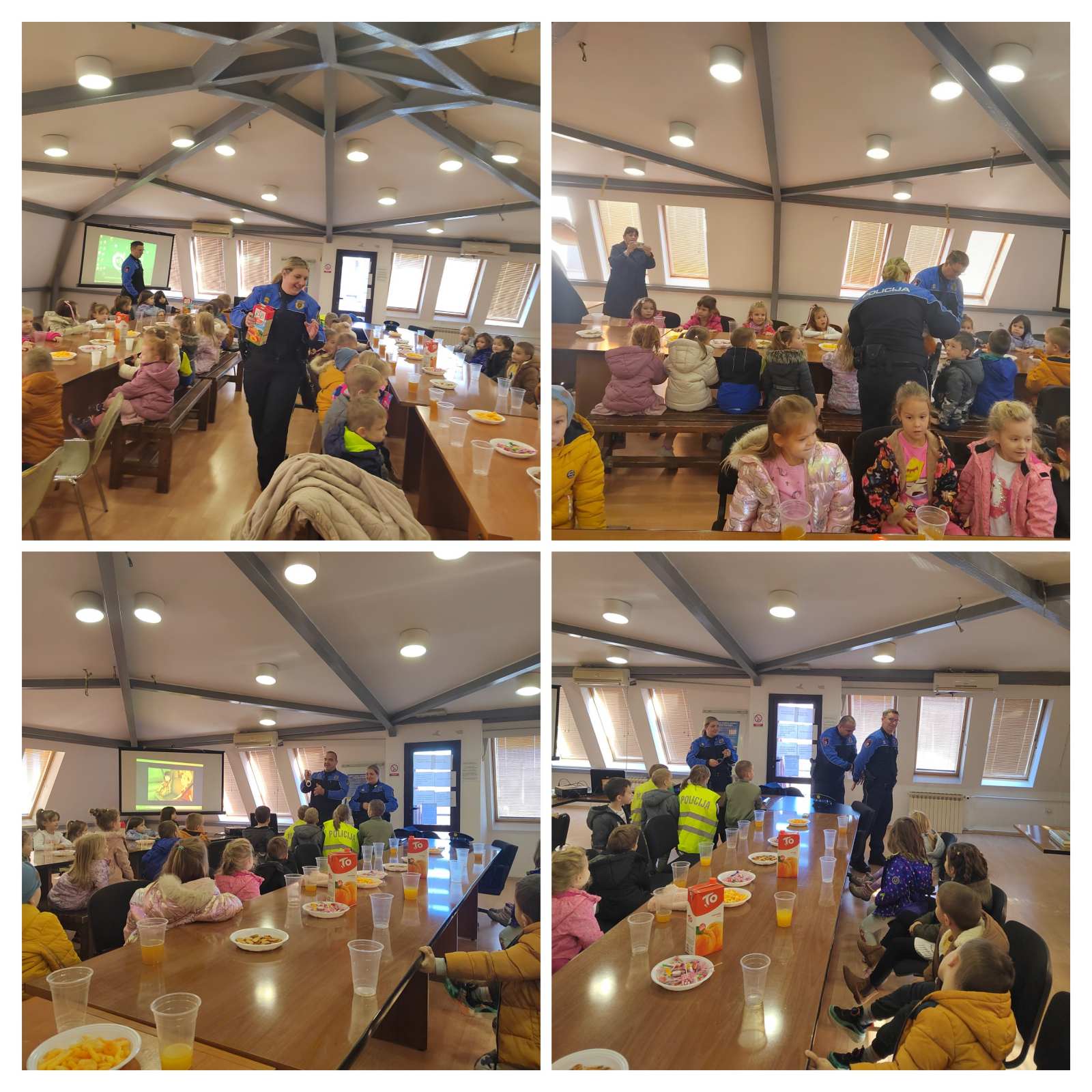 Kroz razgovor i interaktivne sadržaje, djeca su upoznala važnost i odgovornost policijskog zanimanja, pogledala edukativni film o sigurnosti i saobraćajnim pravilima te razgledala policijsku opremu i prostorije stanice.
