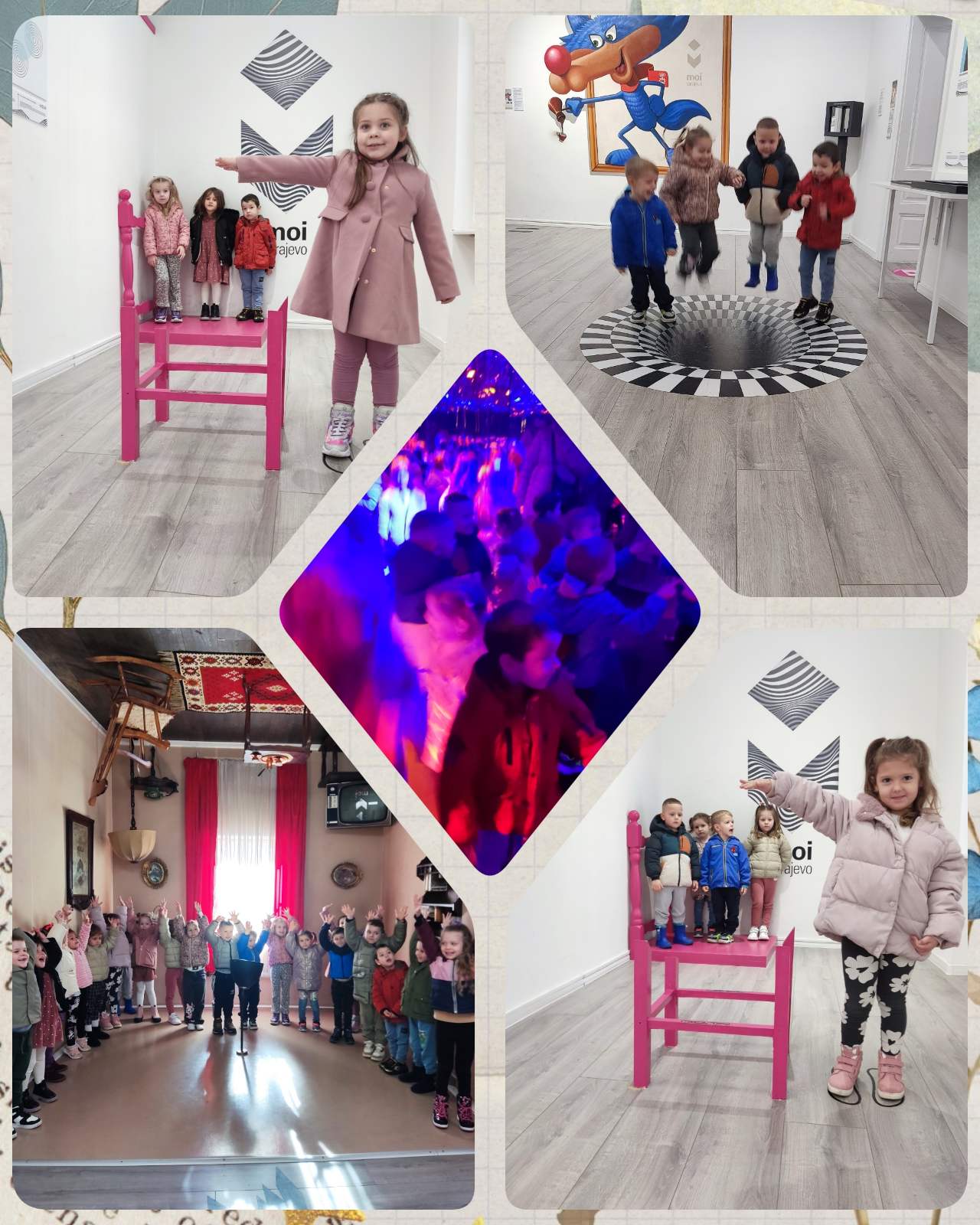 👩🏫 “Posjeta Muzeju optičkih iluzija bila je divna prilika da djeci pružimo iskustvo koje spaja igru, istraživanje i učenje. Kroz interaktivne postavke djeca su razvijala pažnju, logičko mišljenje i maštu, a posebno nas je obradovalo njihovo oduševljenje i međusobna saradnja tokom istraživanja. Vratili smo se puni novih saznanja i inspiracije za dalji rad u vrtiću.” – Dženana Hadžić Husić, odgajateljica
