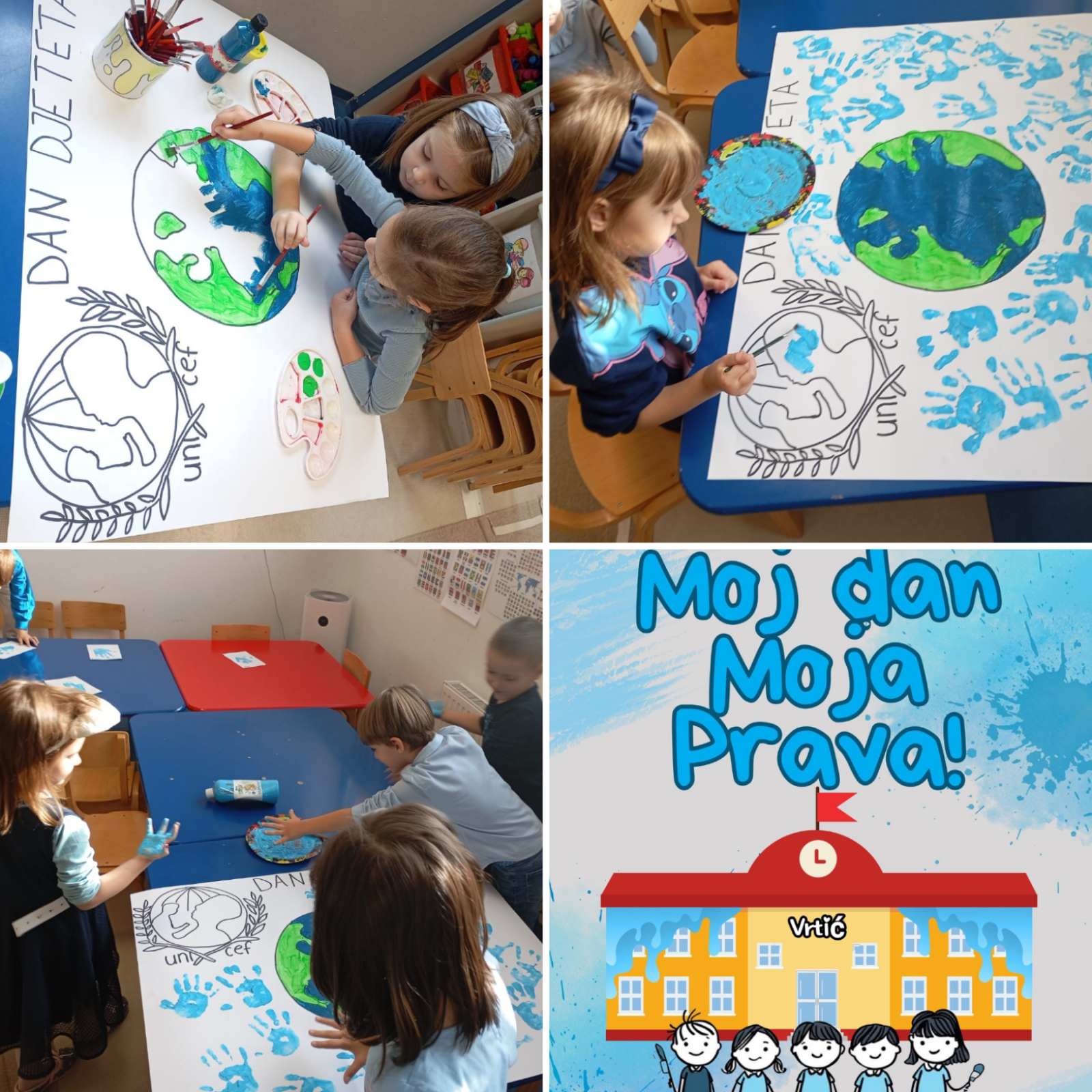 🎈 Uz podršku svojih učiteljica, starija djeca su razgovarala o dječijim pravima – naučila su šta su to prava, koja sve prava imaju, zašto su važna i kome pripadaju. Na plavi papir, otiscima svojih malih ručica, prenijeli su svoju energiju, toplinu, ljubav i poruku: „Moja ruka ima pravo da se igra, da uči, da bude zaštićena i voljena…“ 🖐🏻❤️