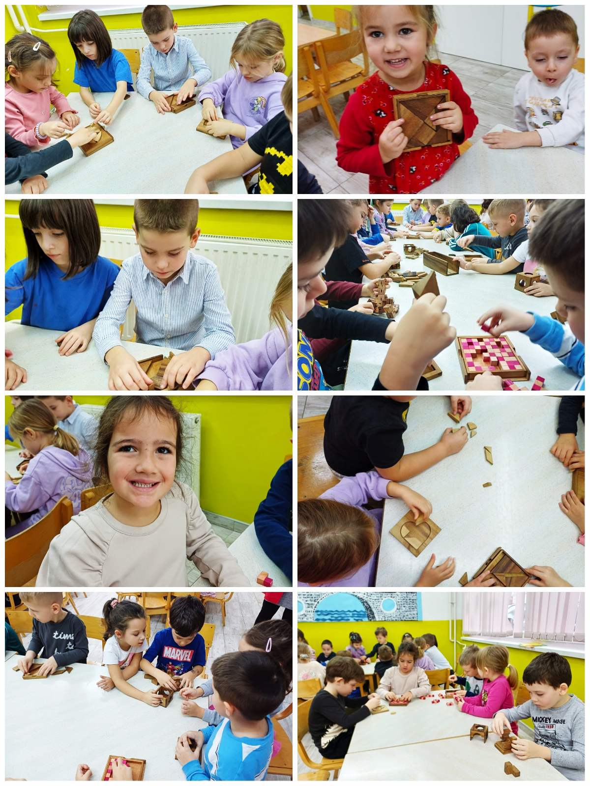 👩🏫 “Radionica “Mozgalica” pružila je djeci priliku da na zabavan način otkrivaju koliko je važno razmišljati, upoređivati i istraživati. Slaganjem tangrama djeca su jačala sposobnost vizuelnog uočavanja, razvijala upornost i učila kako različite oblike mogu povezati u jednu cjelinu. Svaki trenutak proveden u učenju kroz igru doprinosi njihovom cjelokupnom razvoju i pripremi za nove životne izazove.”
