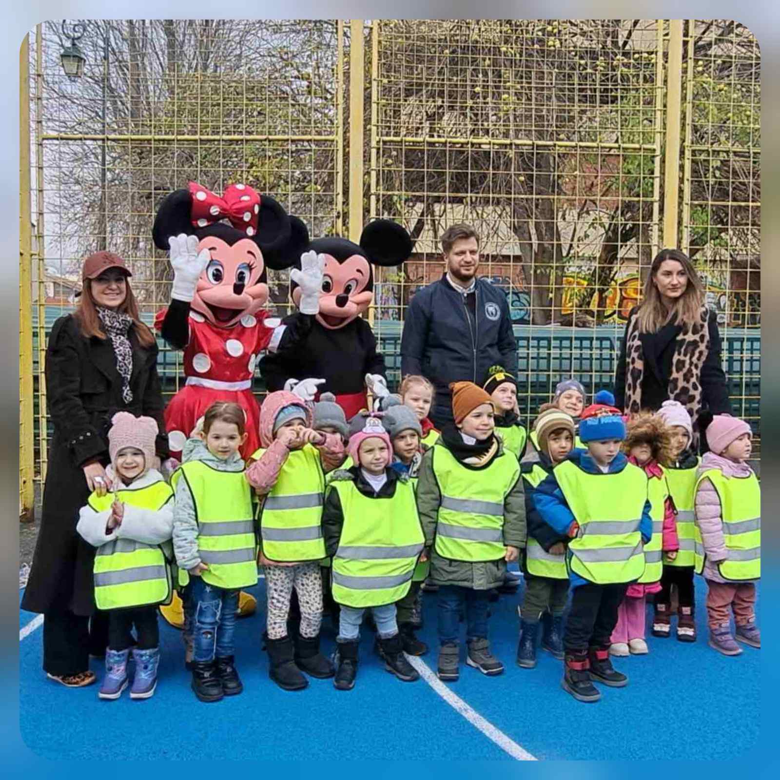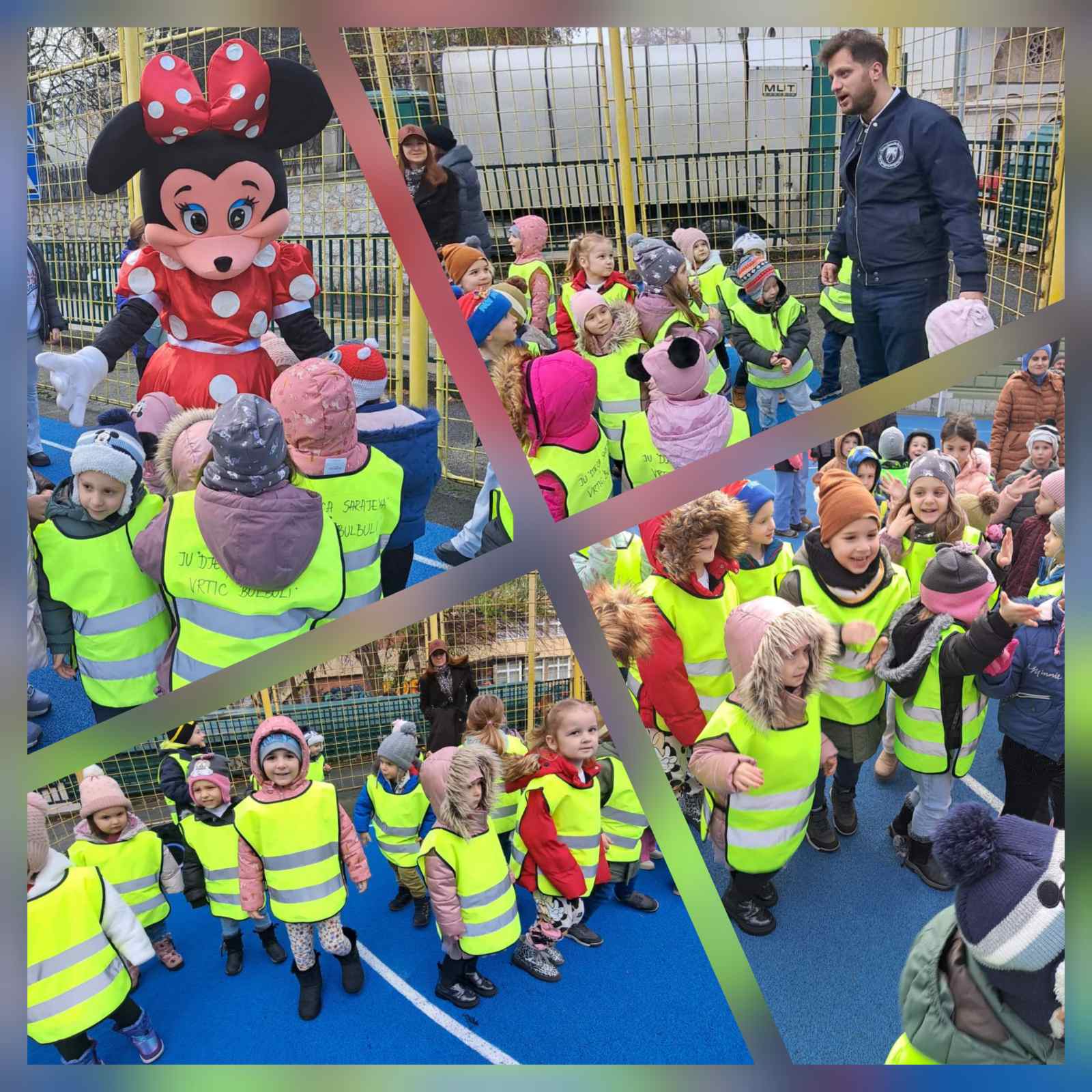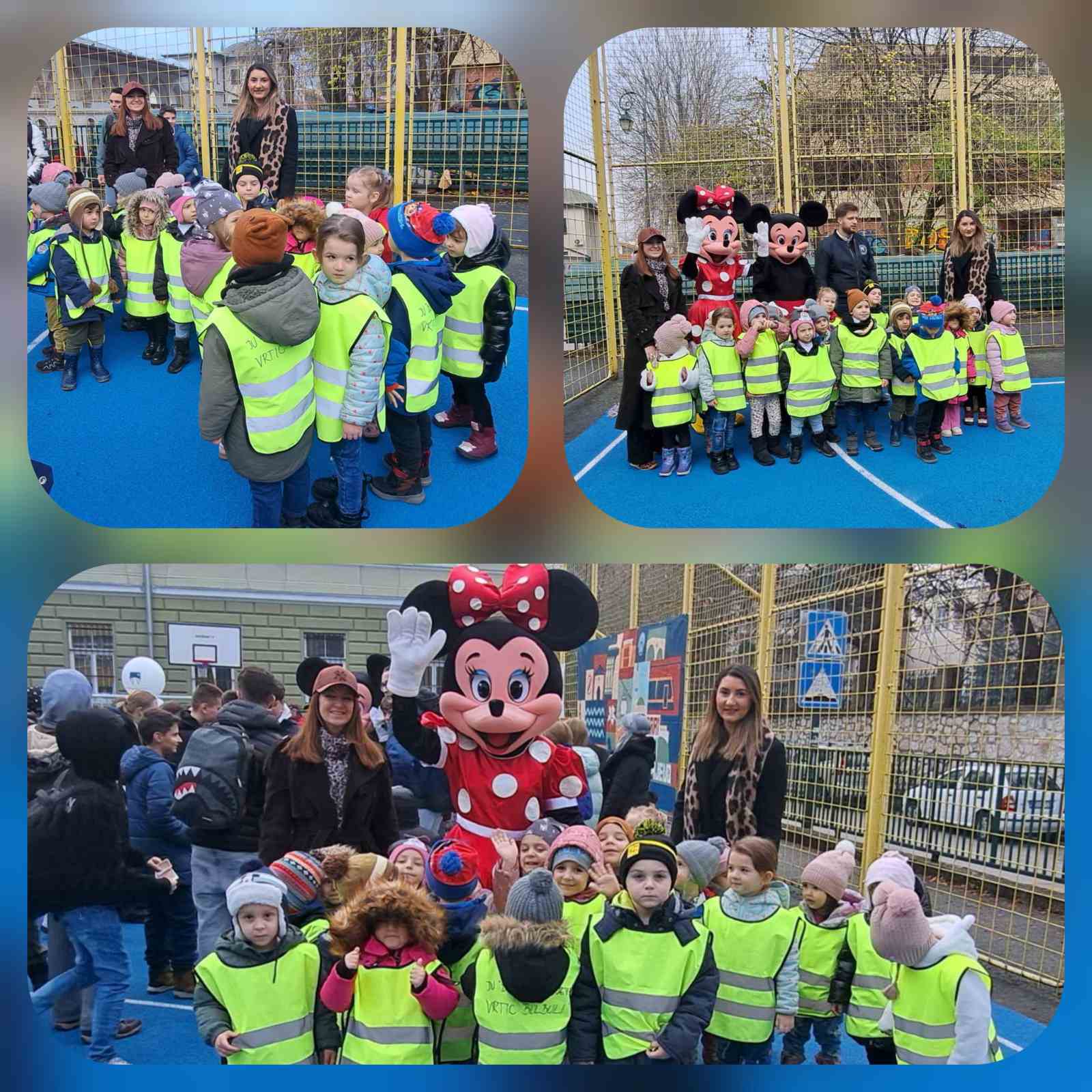👧🏼👦🏻 U okviru poziva Općine Stari Grad, djeca iz mješovite grupe od 3 godine do polaska u školu, zajedno s odgajateljicama Nasihom K. i Almom K. su dana, 3. decembra 2025. godine prisustvovala svečanom otvaranju novog školskog igrališta OŠ „Edhem Mulabdić“.