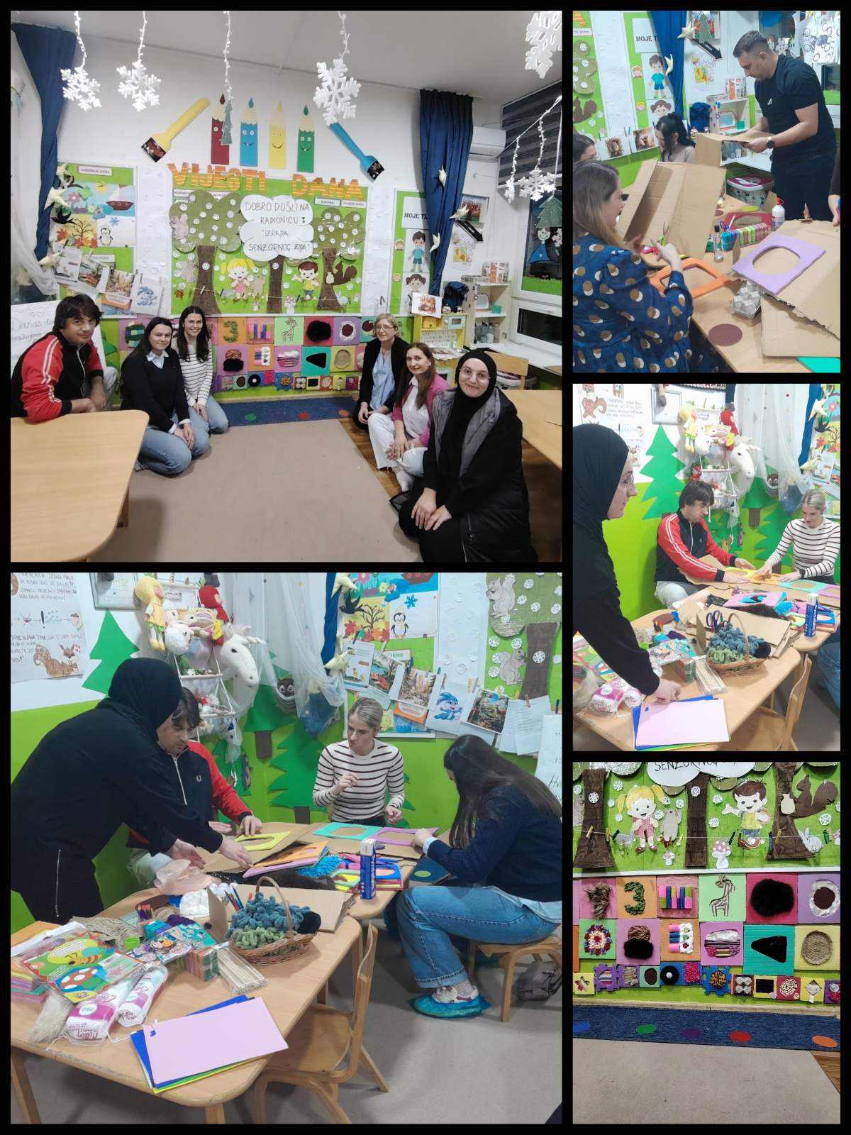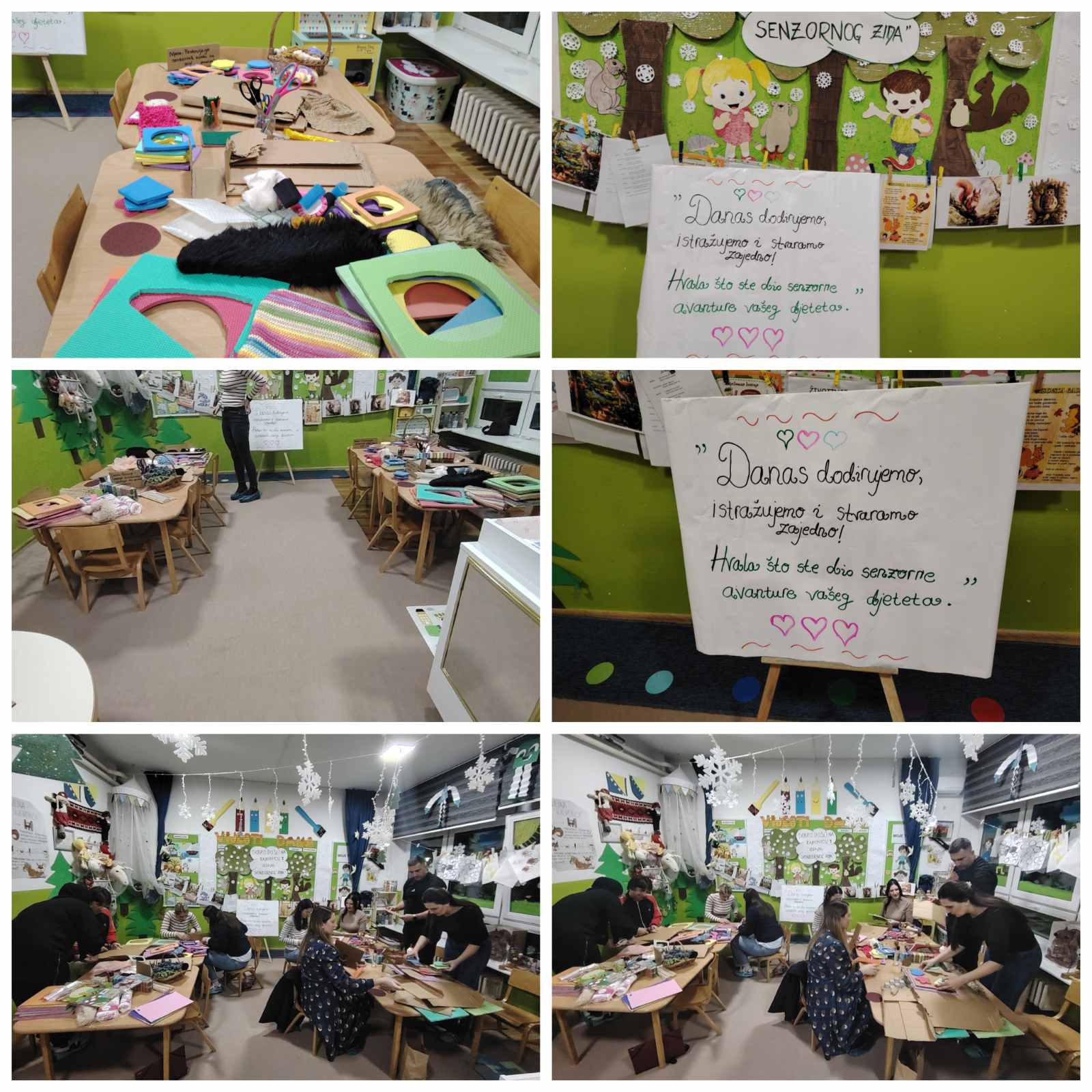 🧩 U vrtiću „Rosica“ realizovana je kreativna radionica s roditeljima na temu „Izrada senzornog zida“, s ciljem podsticanja i razvoja dječijih čula, fine motorike, istraživačkog duha i toplog senzornog iskustva. Ovom senzornom avanturom obogatili smo odgojnu sobu naših najmlađih i pružili im prostor za učenje kroz dodir, igru i istraživanje.