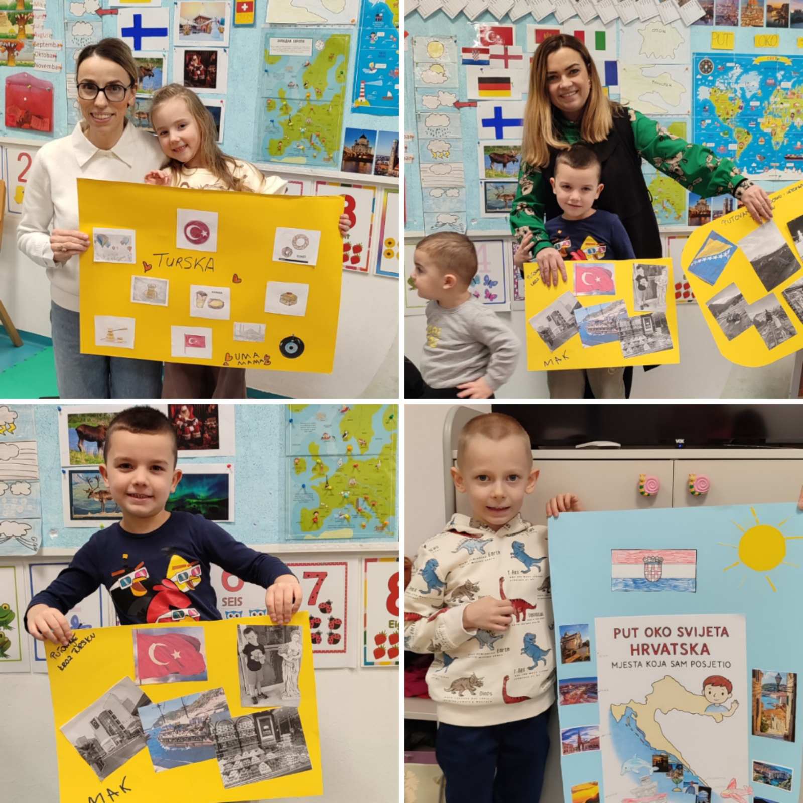 U vrtiću „Vjeverica“ doživjeli smo prekrasan poslijepodnevni trenutak! Dvije odvojene grupe šeste godine života, zajedno sa svojim odgojiteljicama Eminom Beganović, AlimkomIvanom i Eminom Burazerović organizovale su radionicu za roditelje i djecu u okviru projekta “Put oko svijeta”, koji s ljubavlju pratimo od septembra. 🌟