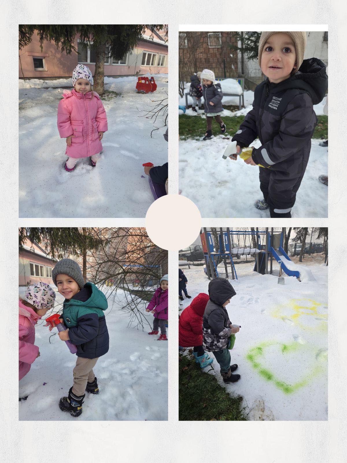 👩🏫 „Kroz aktivnost bojenja snijega djeca su imala priliku da na kreativan i spontan način istražuju zimsko okruženje. Igra na otvorenom potakla je njihovu maštu, saradnju i radost zajedničkog stvaranja, a sreća na dječijim licima najbolji su pokazatelj uspješno realizovane aktivnosti.“ – Sanja Fejzić, odgovorna odgajateljica