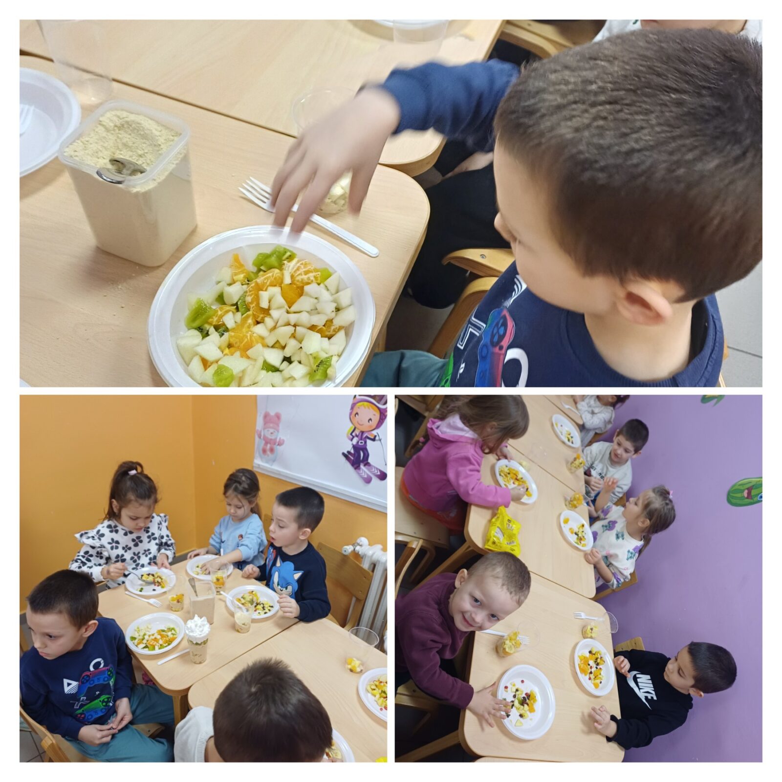 🍎Ovom aktivnošću kod djece razvijamo svijest o zdravim životnim navikama, samostalnost, finu motoriku, koordinaciju pokreta, saradnju u grupi, komunikacijske vještine, kao i interesovanje za zdrave namirnice i pravilnu ishranu.