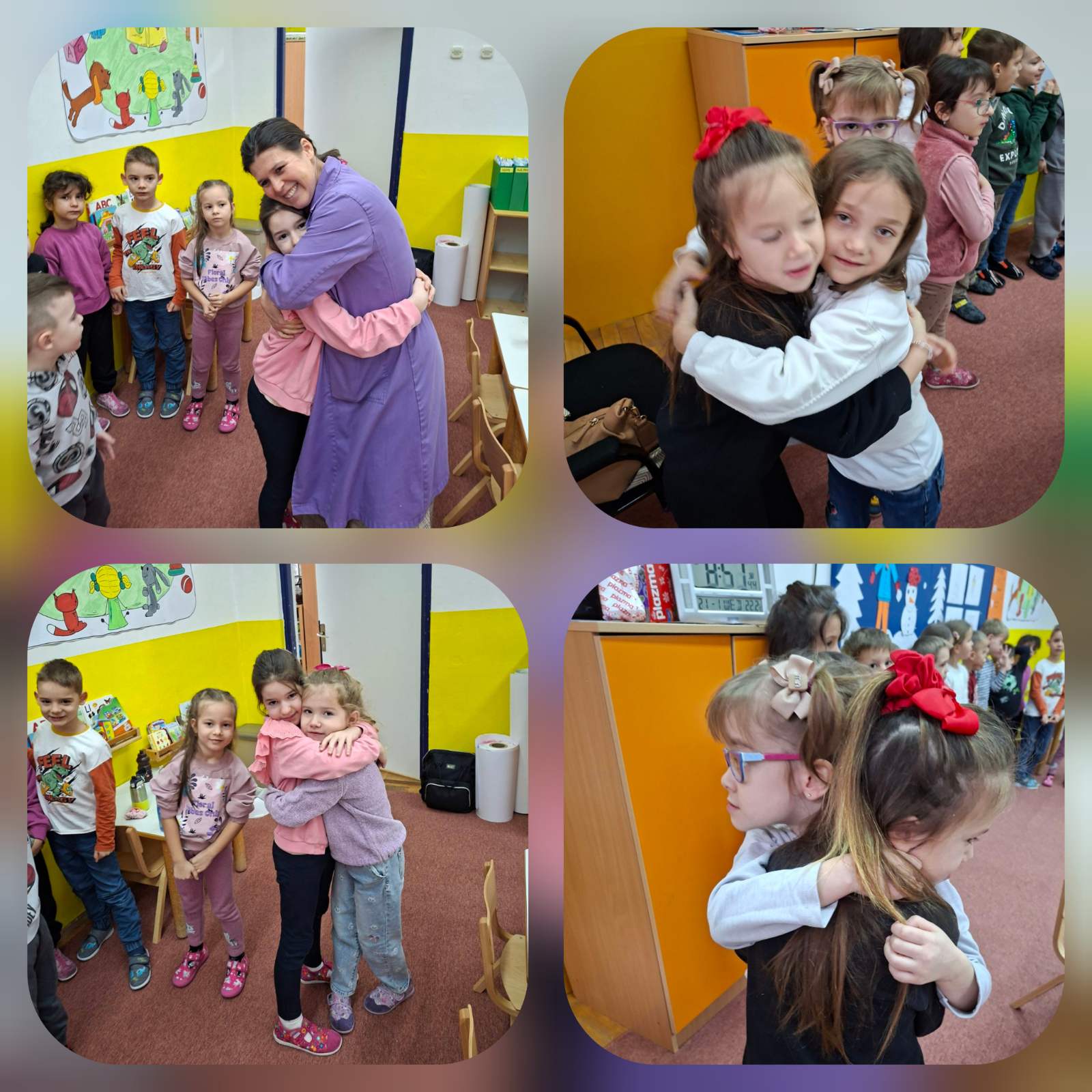 Aktivnost smo započeli razgovorom o važnosti zagrljaja, prijateljstva, empatije i pokazivanja pažnje prema drugima. Djeca su kroz razgovor rado dijelila kako se osjećaju kada nekoga zagrle i kada oni sami dobiju zagrljaj, ističući osjećaje sreće, topline i sigurnosti.