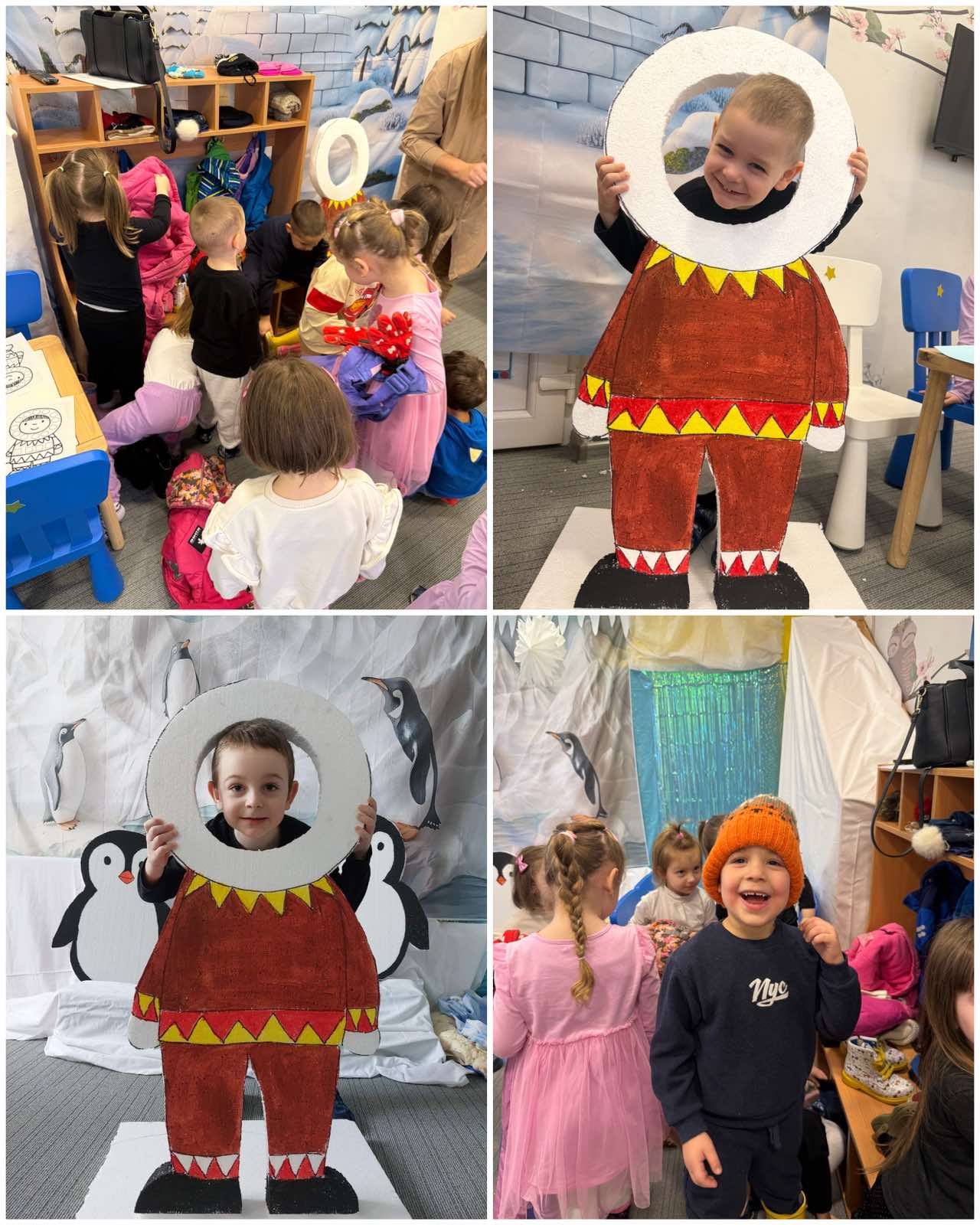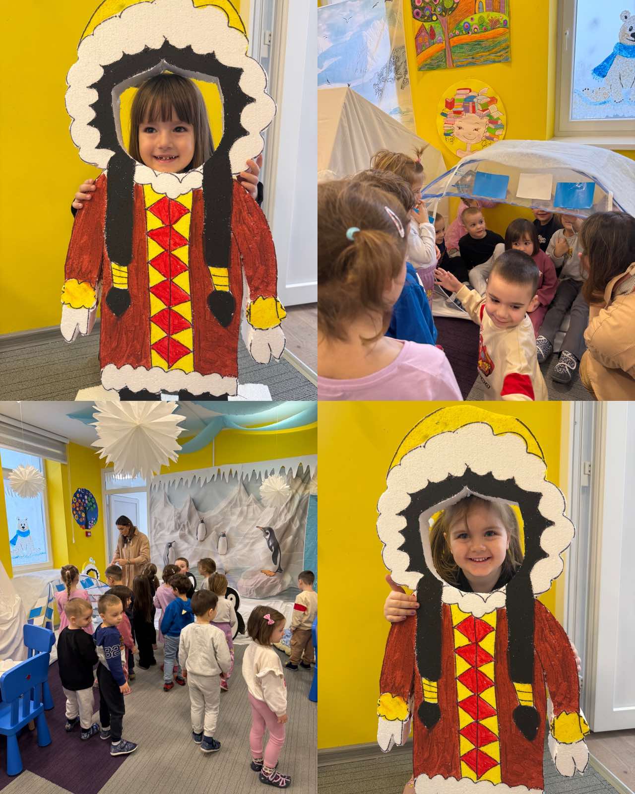 🧊 Jedna djevojčica postavila je pitanje ko su ti ljudi i zašto izgledaju drugačije, nakon čega su se i ostala djeca aktivno uključila svojim komentarima i pitanjima. Kako su djeca već ranije pokazala interes za životinje polarnih krajeva, prirodno se javila želja da saznaju više i o ljudima koji žive u takvim uslovima. Vođeni njihovom radoznalošću, odlučili smo djecu upoznati s Eskimima, njihovim načinom života i prilagođavanjem životu u hladnim krajevima.