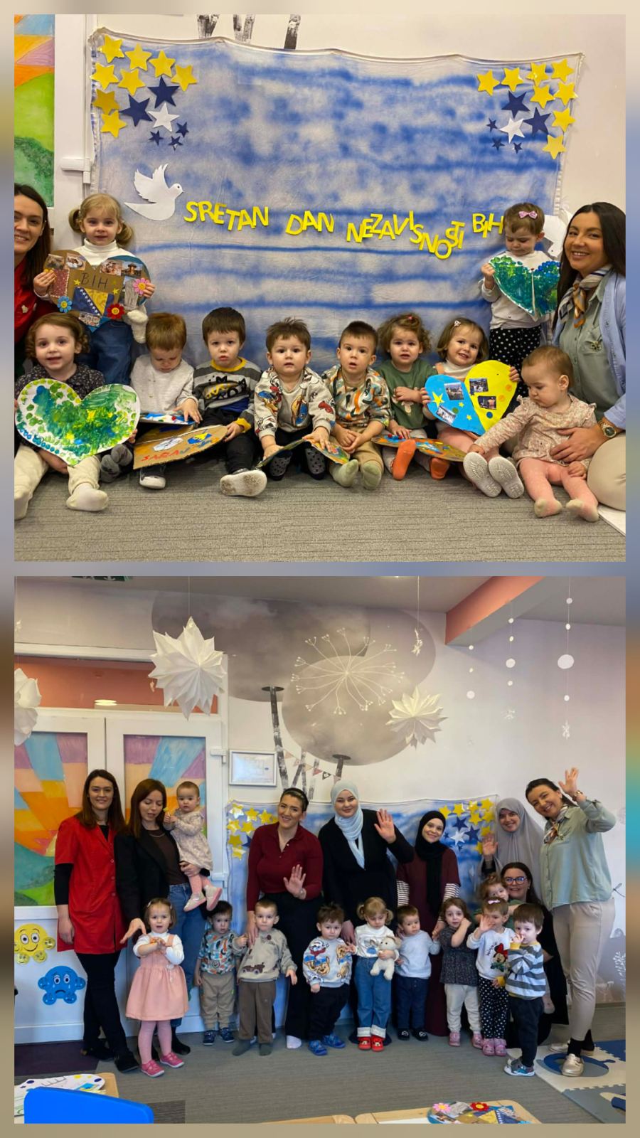 🇧🇦 U ponedjeljak smo u vrtiću “Bulbuli”, s djecom i roditeljima mješovite grupe od 6 mjeseci do 3 godine života realizovali emotivnu i kreativnu radionicu za pod nazivom „Mojoj domovini na dar“.