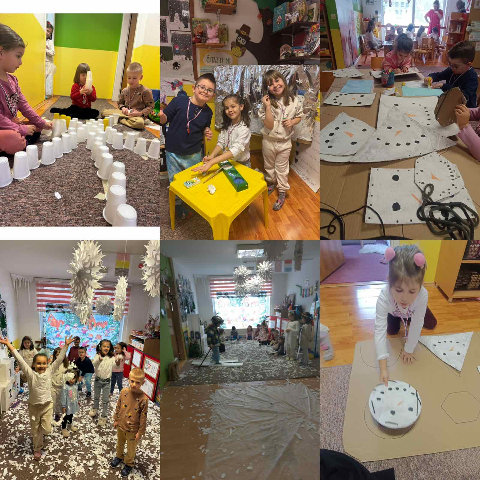 🎶 Aktivnost je započela veselom pjesmicom „Stonoga na skijanju“, koja je djecu uvela u temu i stvorila razigranu atmosferu. Nakon toga, mališani su izveli igrokaz pod nazivom „Zimska pustolovina“, u kojem su s puno entuzijazma pokazali svoju kreativnost i saradnju.