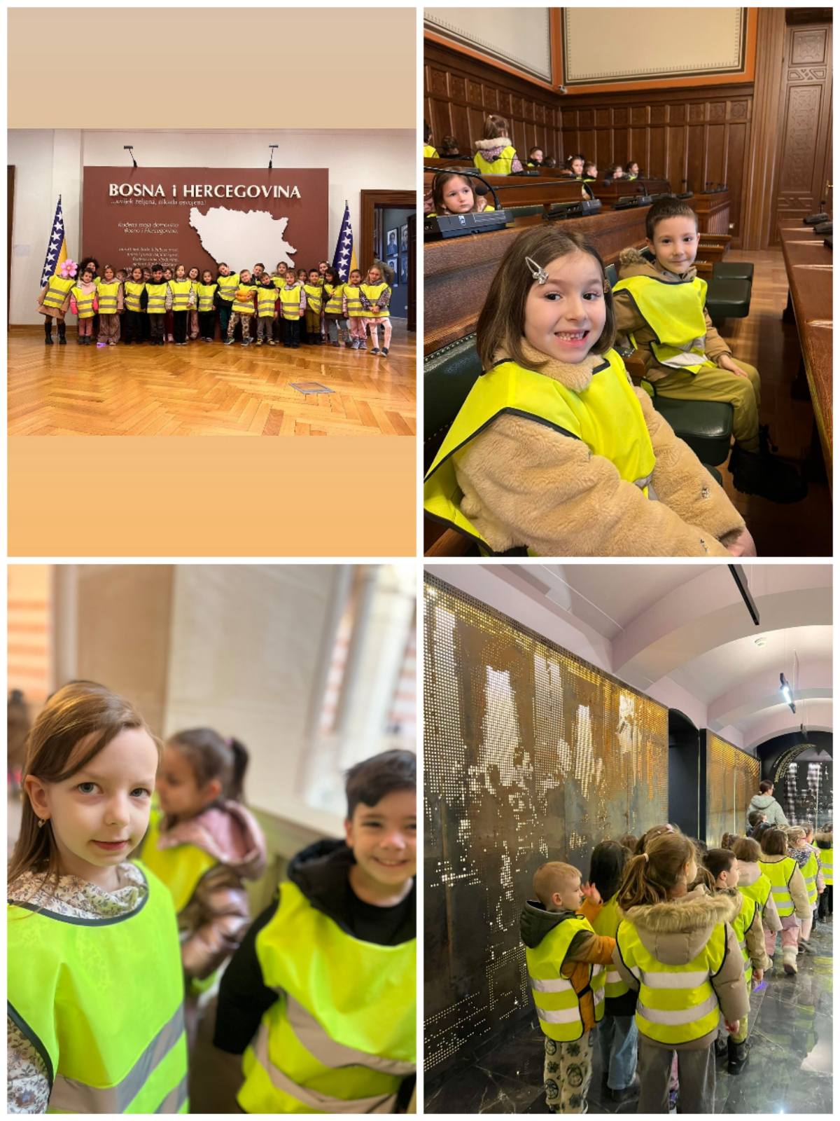 👧🏼 👦🏻 U skladu s uzrastom, djecu smo upoznali s značajem ovog važnog datuma. Poseban doživljaj mališana iz mješovite grupe djece od 3 godine do polaska u školu bila je posjeta Vijećnici, jednom od najprepoznatljivijih simbola naše zemlje. Djeca su imala priliku da se upoznaju s njenom ljepotom i historijskim značajem te da na neposredan način osjete dio bogate kulturne baštine.