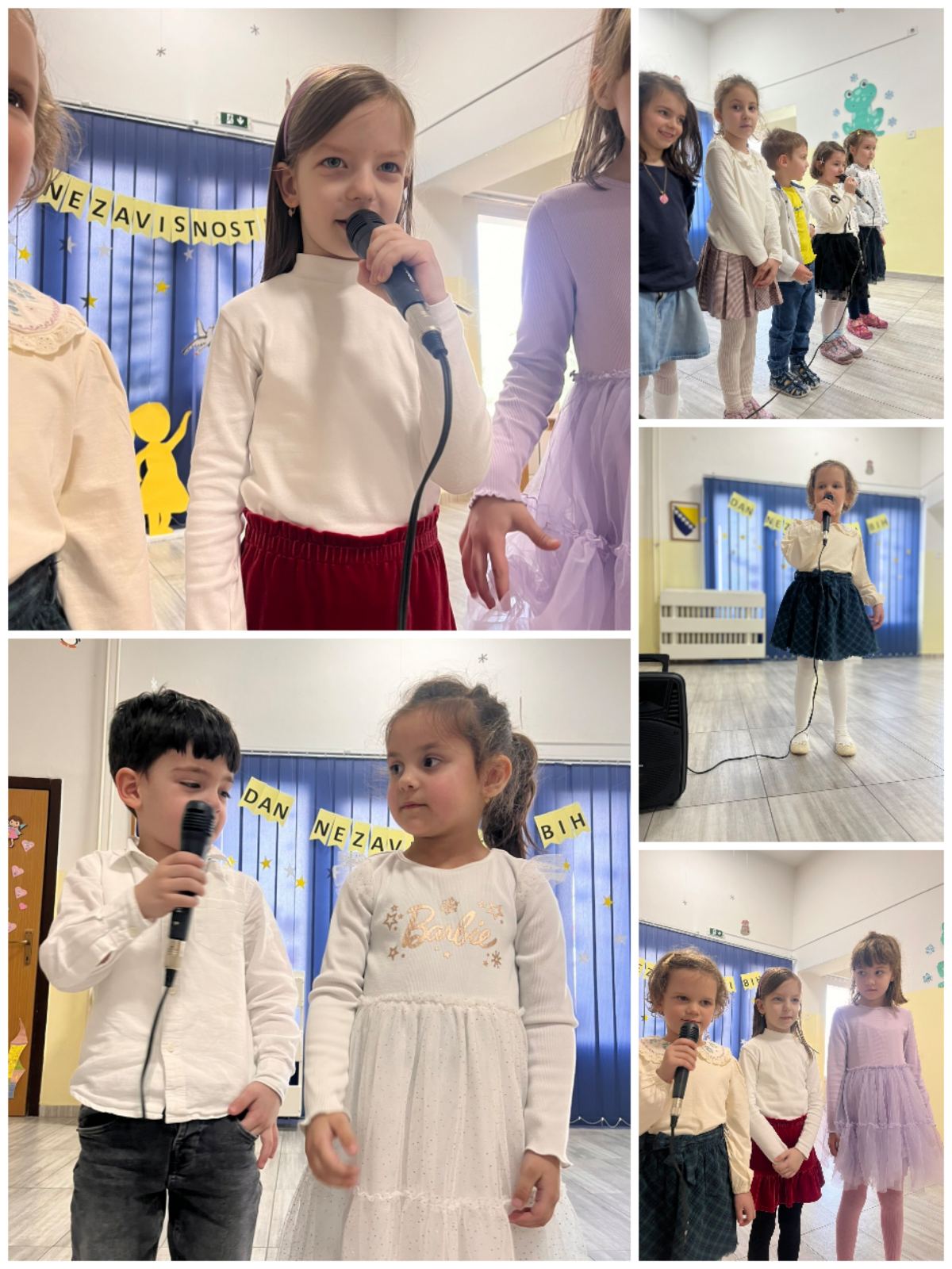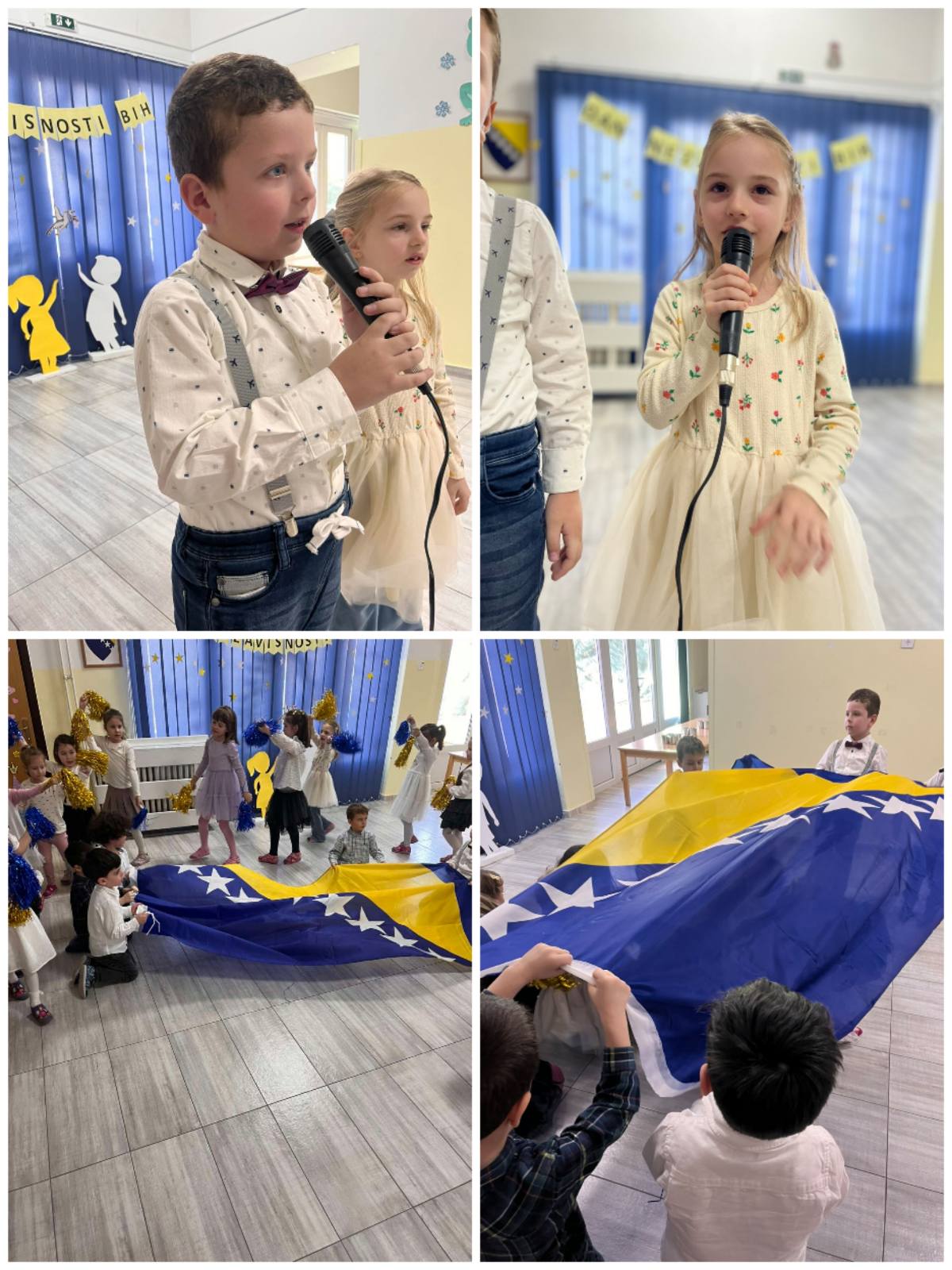 🕊️ Centralni dio obilježavanja bila je svečanost pod nazivom „Domovini s’ ljubavlju“, koju smo organizovali u prostorijama vrtića. Kroz recitacije, pjesme i prigodan program, djeca su na sebi svojstven i iskren način pokazala koliko već sada razumiju vrijednosti slobode, zajedništva i ljubavi prema domovini.