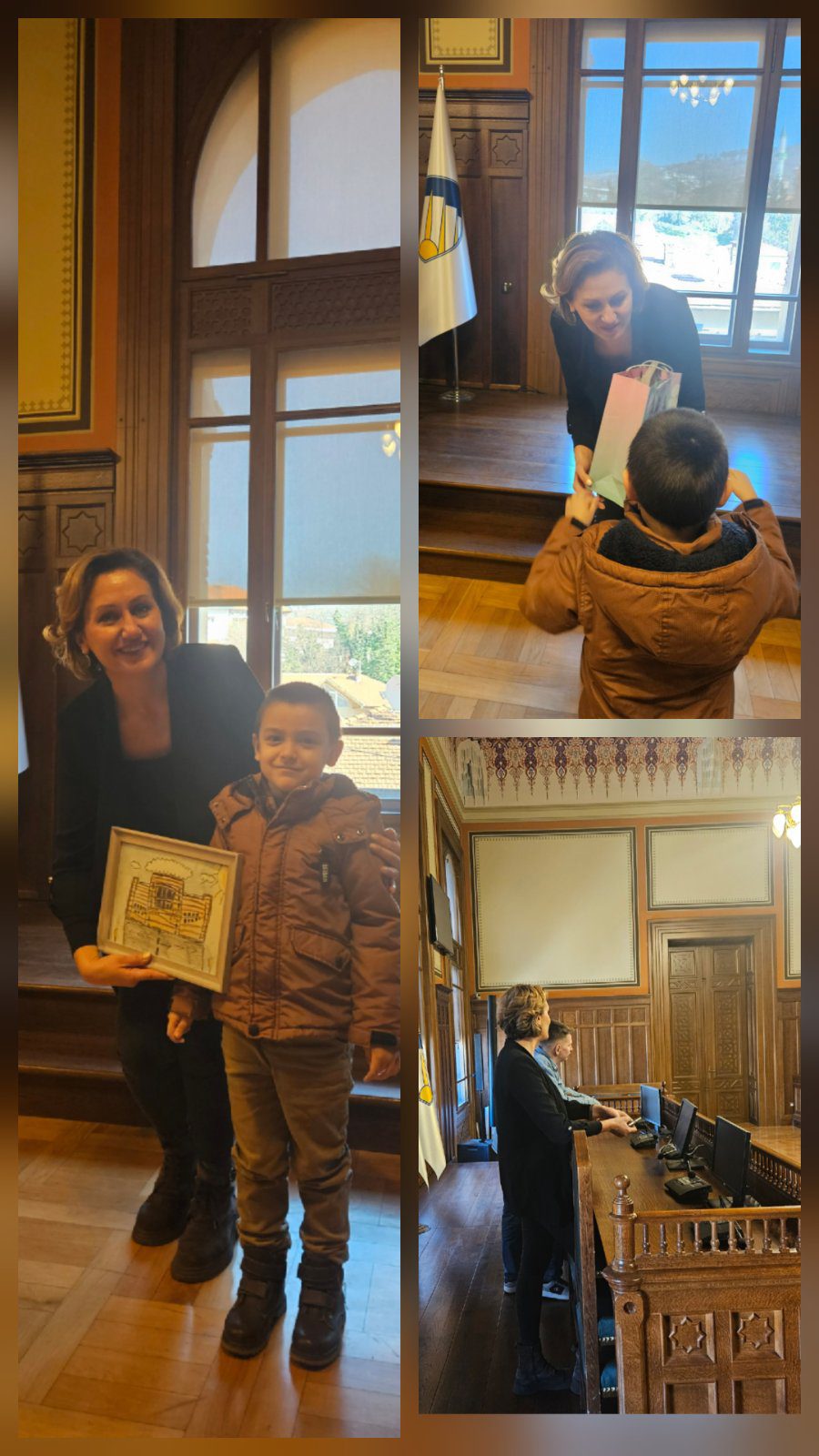 👧🏼👦🏻 Djeca su s velikim interesovanjem posmatrala unutrašnjost Vijećnice, njene bogato ukrašene zidove, vitraže i impozantnu centralnu aulu.