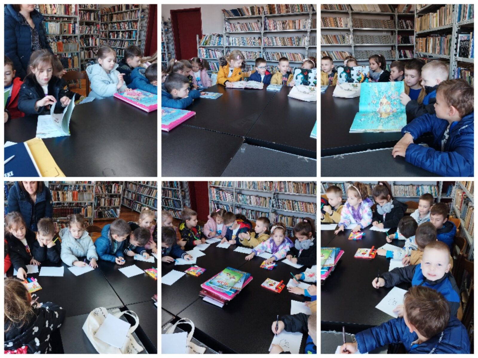 📚 Tokom boravka u biblioteci djeca su interpretirala vlastite priče, pažljivo slušala pričanje zanimljivih bajki i razgovarala o likovima i porukama koje su prepoznala. Na kraju su ilustrovala slušanu priču, s ciljem izrade zajedničke slikovnice za vrtić. Ovim aktivnostima razvijamo govorno-jezičke sposobnosti, maštu, kreativnost, pažnju i koncentraciju, ali i ljubav prema knjizi od najranijeg uzrasta. Djeca su učila kako slušati, izražavati svoje misli i doživljaje te sarađivati u zajedničkom stvaralačkom procesu.