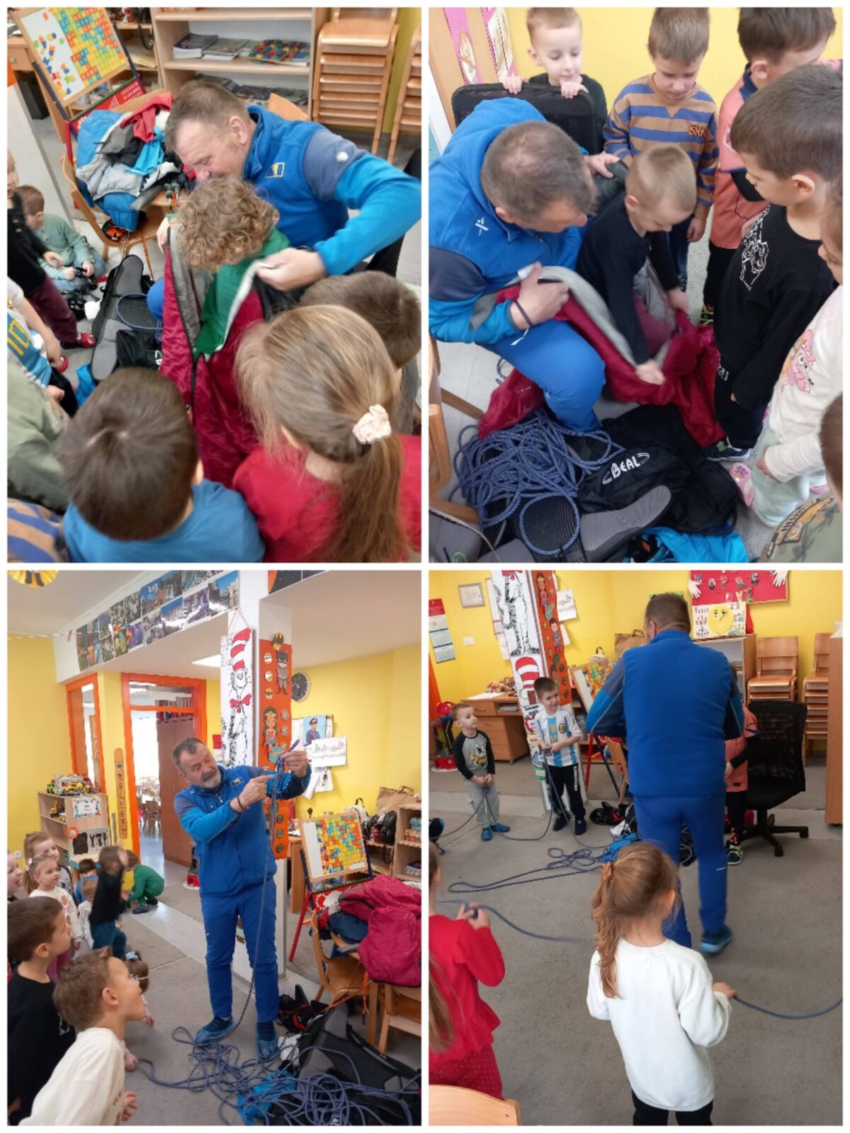 🏔️🥾 Vrtić „Radost“ ugostio je planinara Eldina Kajtaza iz Planinarskog društva „Planine“ Sarajevo, ujedno i profesionalnog planinarskog vodiča. On je djecu upoznao s načinom kretanja ljudi po planini, važnosti boravka u prirodi i opremom potrebnom za planinarenje. Kroz demonstraciju planinarske opreme i zanimljiv razgovor, djeca su pokazala veliko interesovanje, postavljala pitanja i aktivno učestvovala u diskusiji.