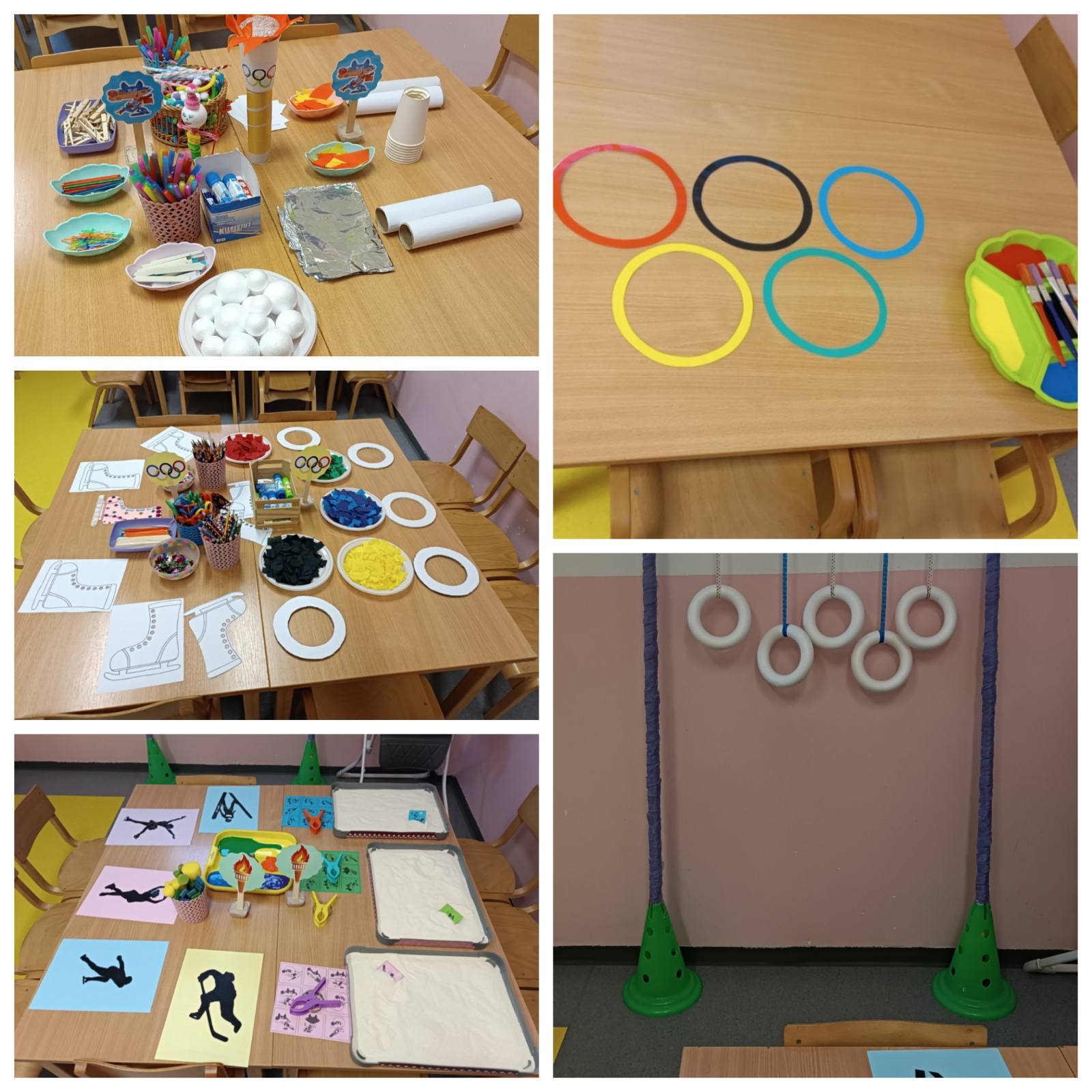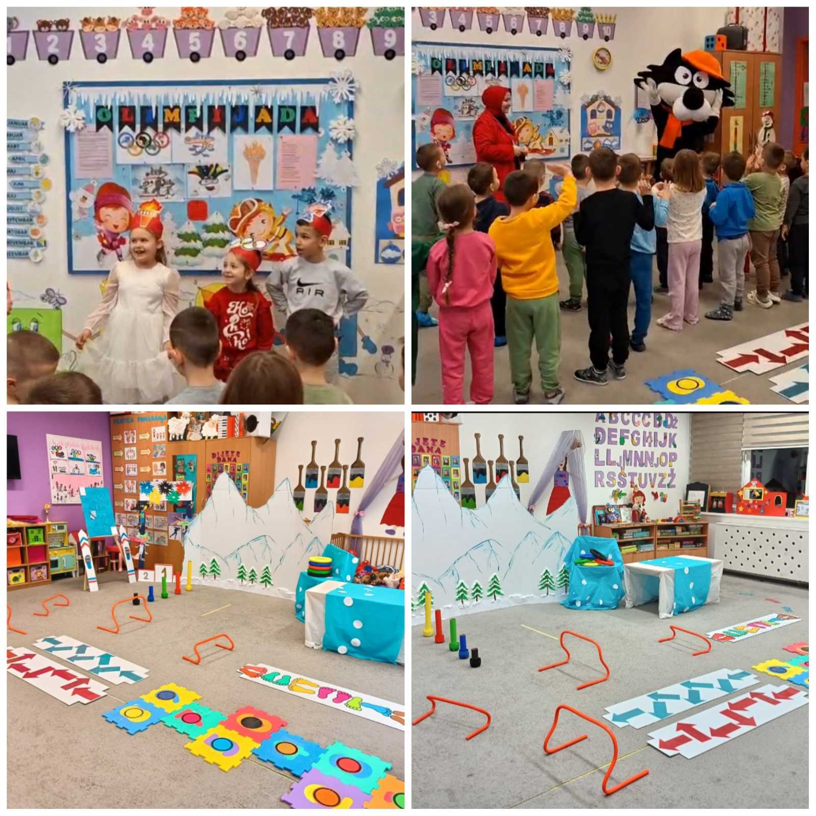 🏆 Dolaskom na „planinu“ započele su Olimpijske igre. Djeca su prolazila kroz olimpijski poligon koji se sastojao od različitih zadataka i izazova: „Školica“ – prati boje olimpijskih krugova, „Prati smjer stopala“, „Izaberi jedan put“, „Pređi prepreke“, „Olimpijski tunel“, „Olimpijski krugovi“ – nabacivanje kruga na stub odgovarajuće boje (igra preciznosti), slagalica „Zapali olimpijsku baklju“.