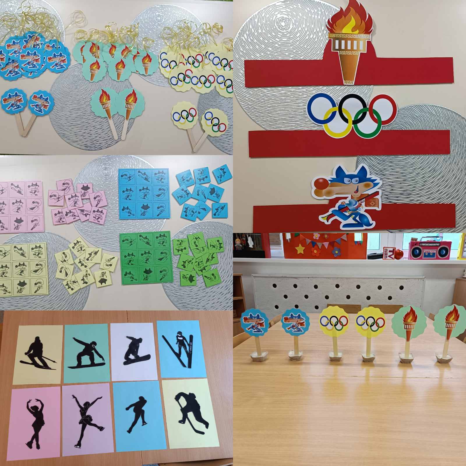 🥇 Prostor vrtića bio je obogaćen raznovrsnim didaktičkim materijalima i sredstvima koji su poticali dječiju igru, istraživanje i učenje. Djeca su imala priliku raditi i igrati se uz veliku planinu izrađenu od kartona, maskotu Vučka, olimpijski poligon sa različitim zadacima i preprekama, kao i tematski pano ispunjen sadržajima vezanim za Olimpijske igre. Zbog raznovrsnosti aktivnosti i potrebe za većim prostorom, dio aktivnosti realizovan je i u drugim prostorijama vrtića.
