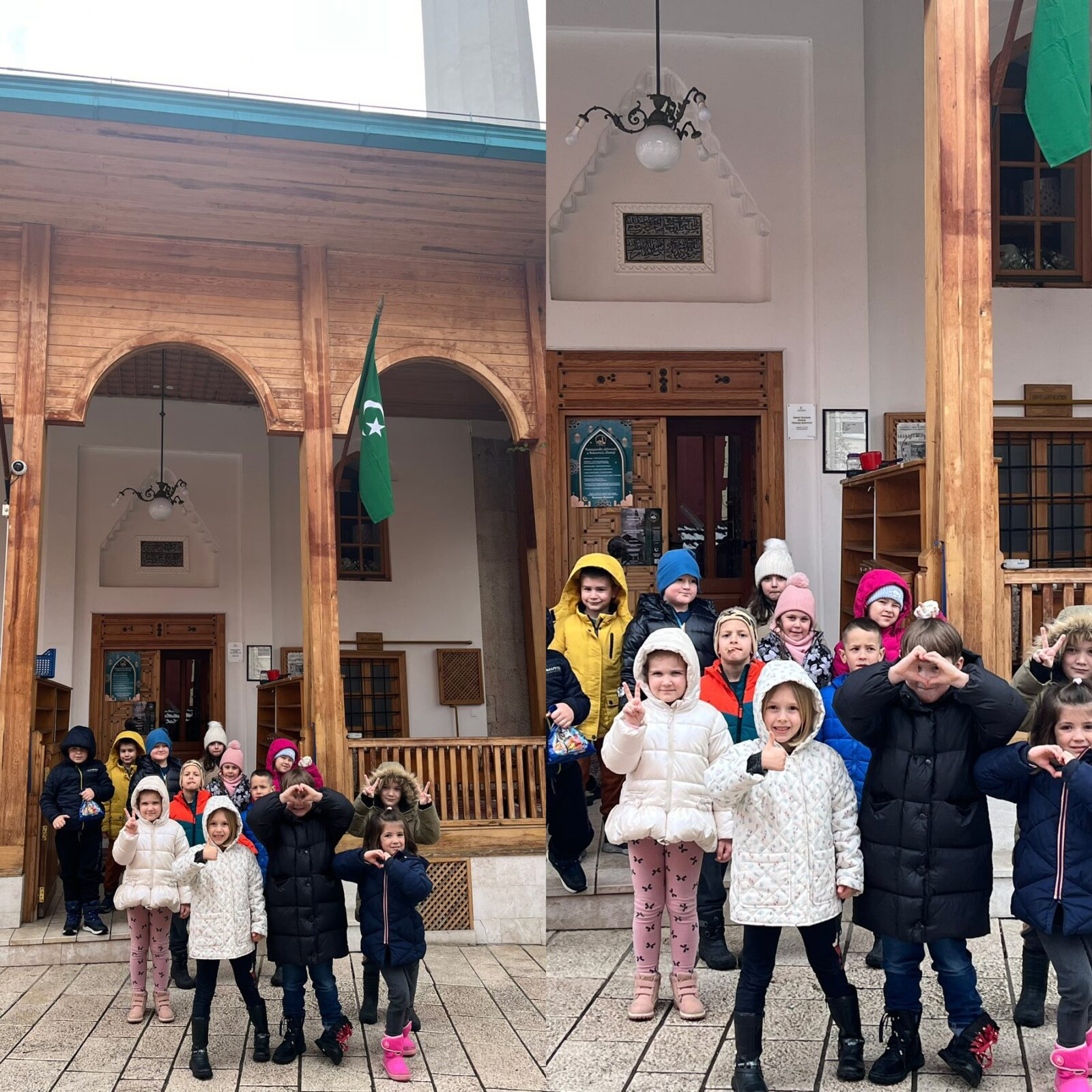 💫 Nakon toga, djeca su posjetila dvorište obližnje džamije, gdje su kroz razgovor i boravak na otvorenom prostoru učila o važnosti poštovanja, mira i kulturnih običaja. Ova iskustvena aktivnost doprinijela je razvoju dječije radoznalosti, boljem razumijevanju tradicije te jačanju osjećaja zajedništva i pripadnosti zajednici.