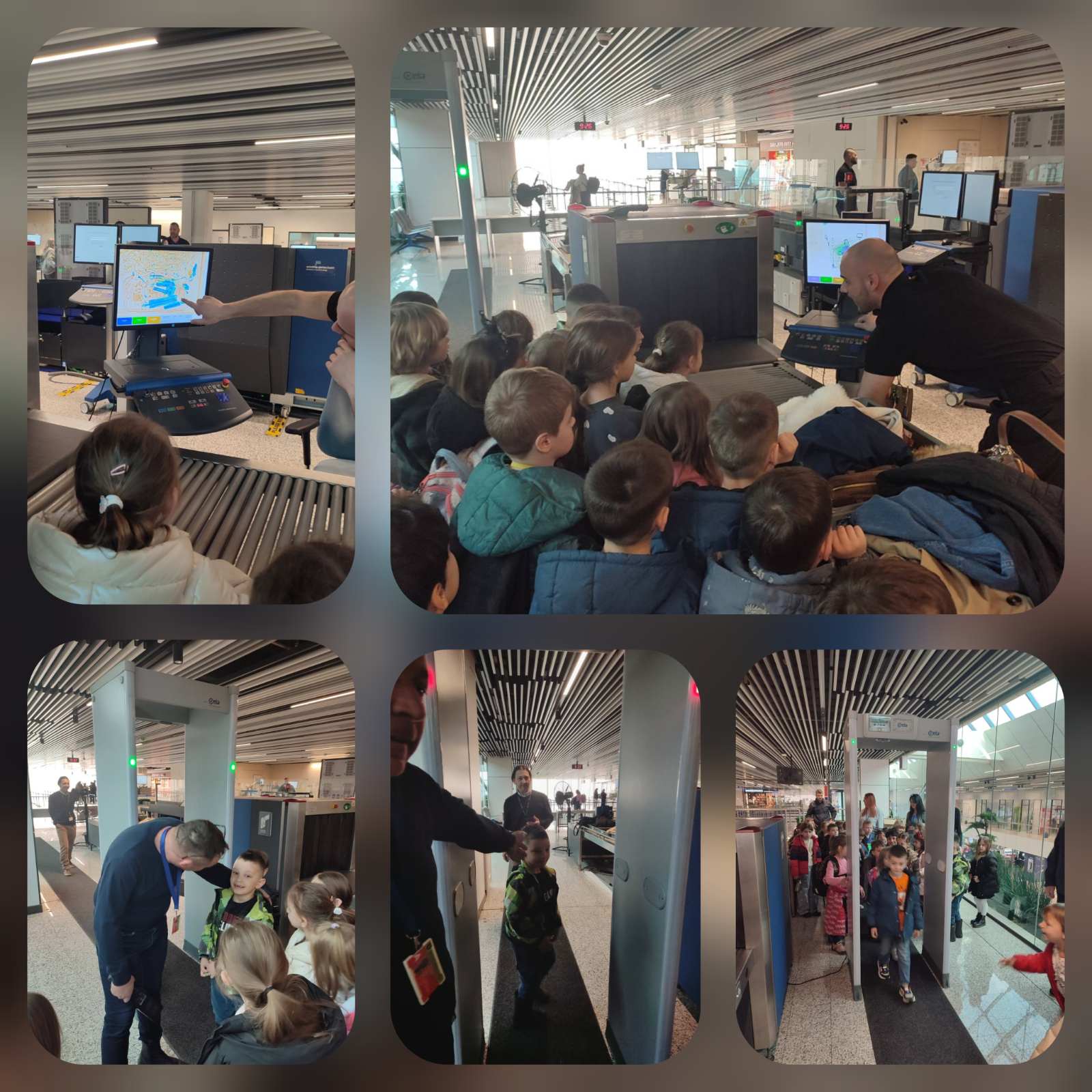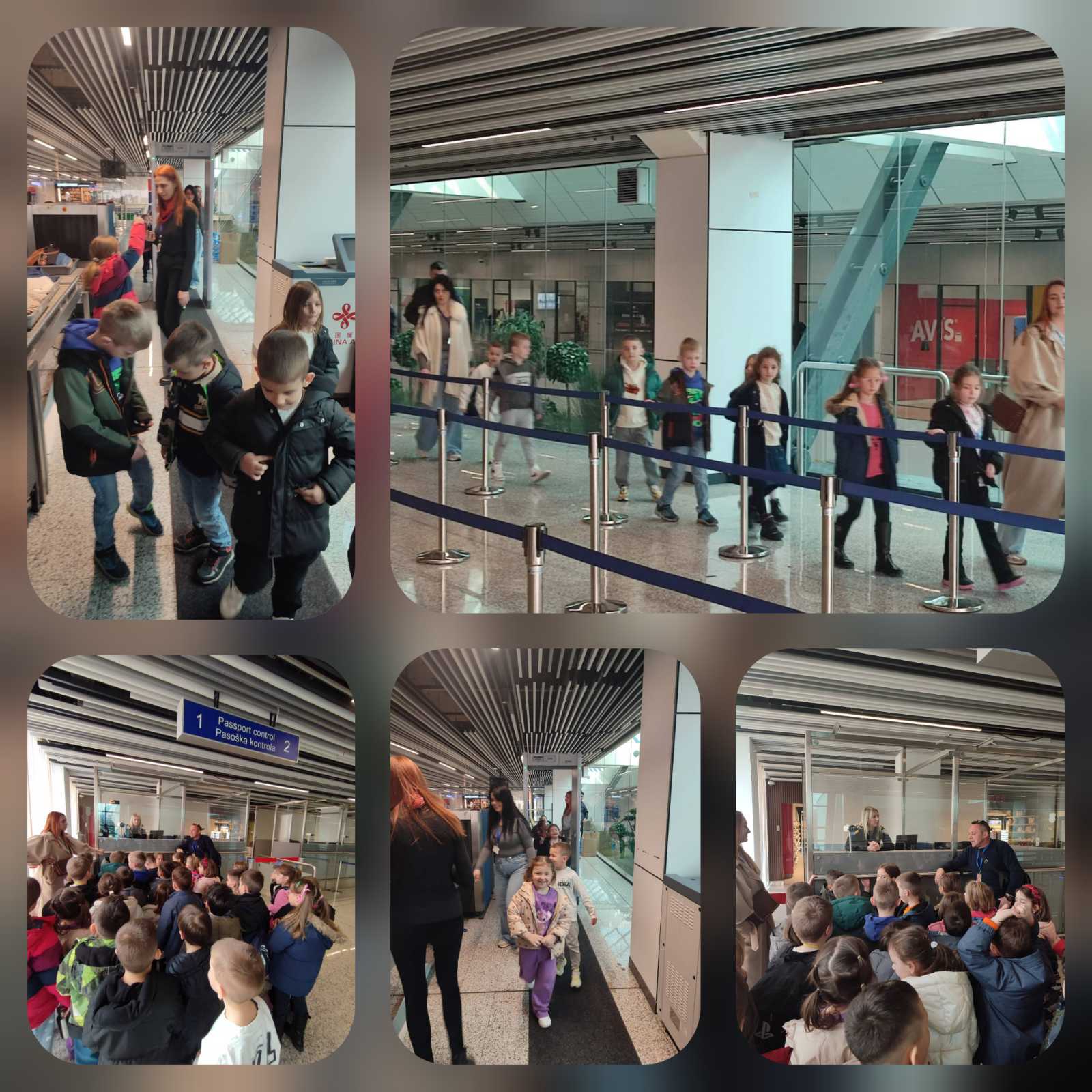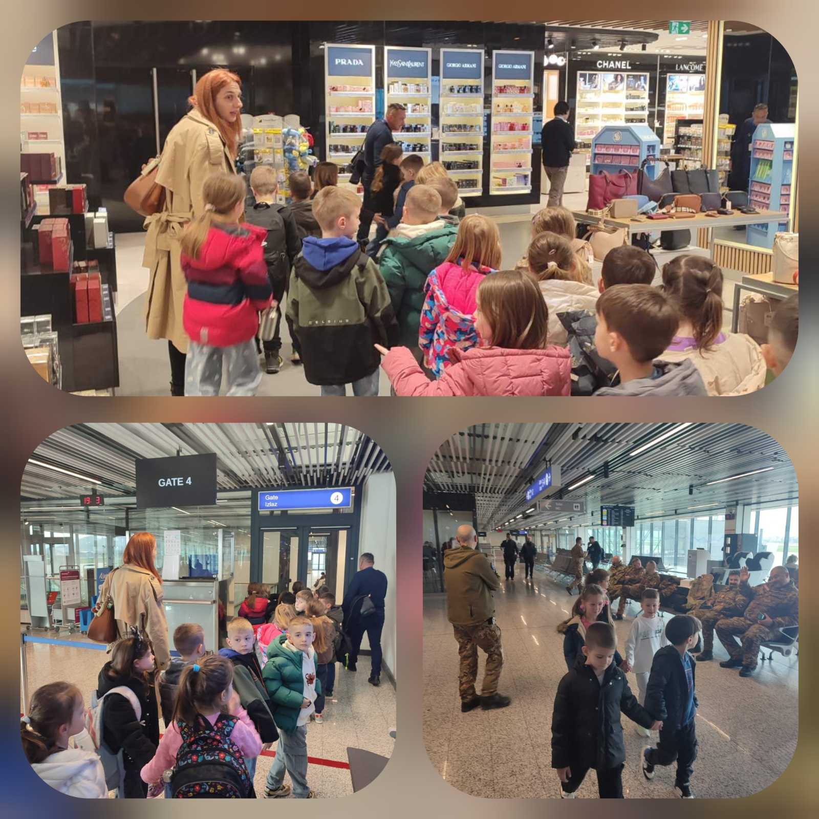 🌟 U sklopu teme/projekta „Zanimanja u saobraćaju“, djeca su imala priliku upoznati različita zanimanja na aerodromu. Posjetili smo šalter za prodaju karata, prošli kroz sigurnosne kontrole i upoznali se s osnovnim pravilima, kao i pasošku kontrolu. Budući da nismo imali pasoše, kako bismo prošli kontrolu morali smo otpjevati pjesmicu „Avioni“ Branka Kockice 😃.