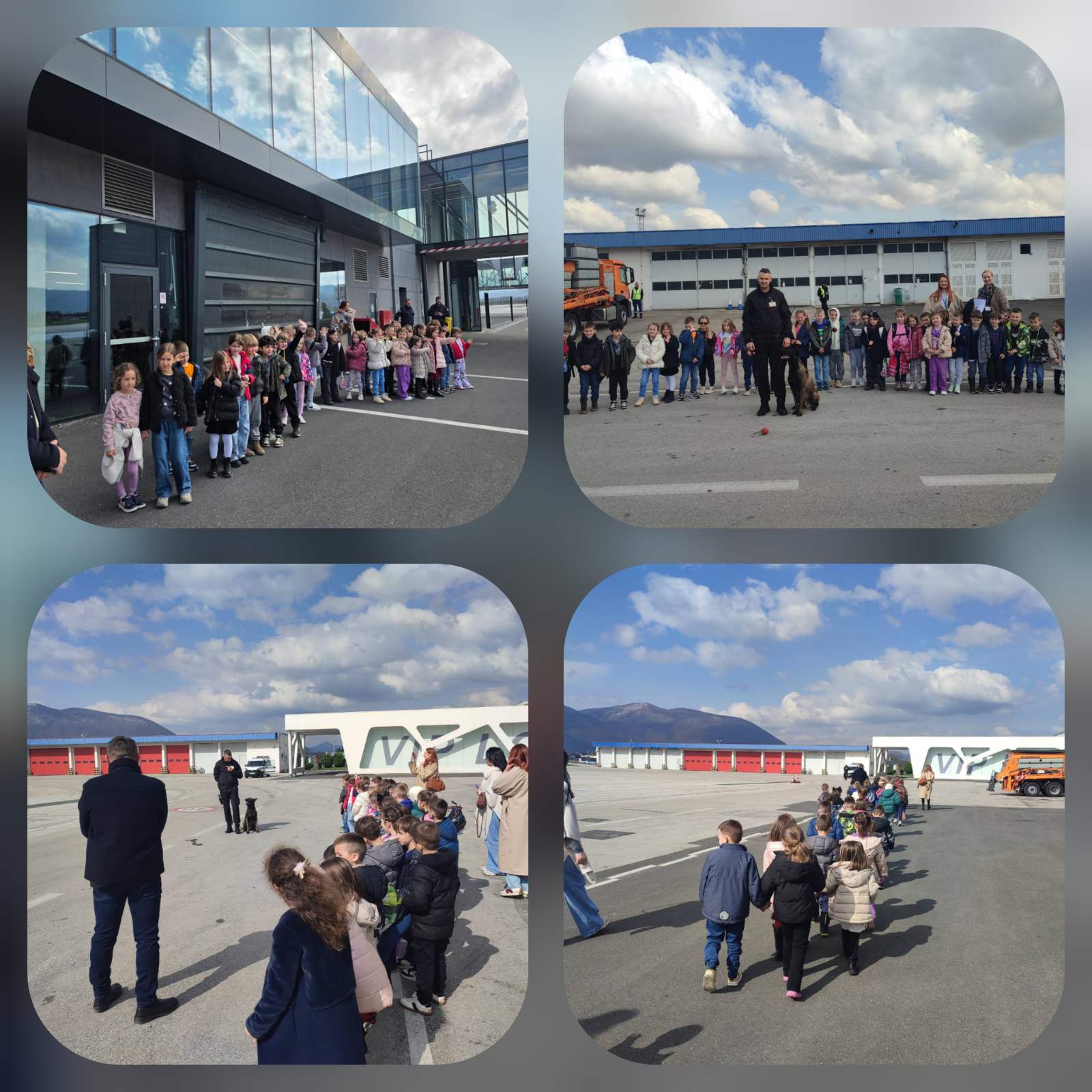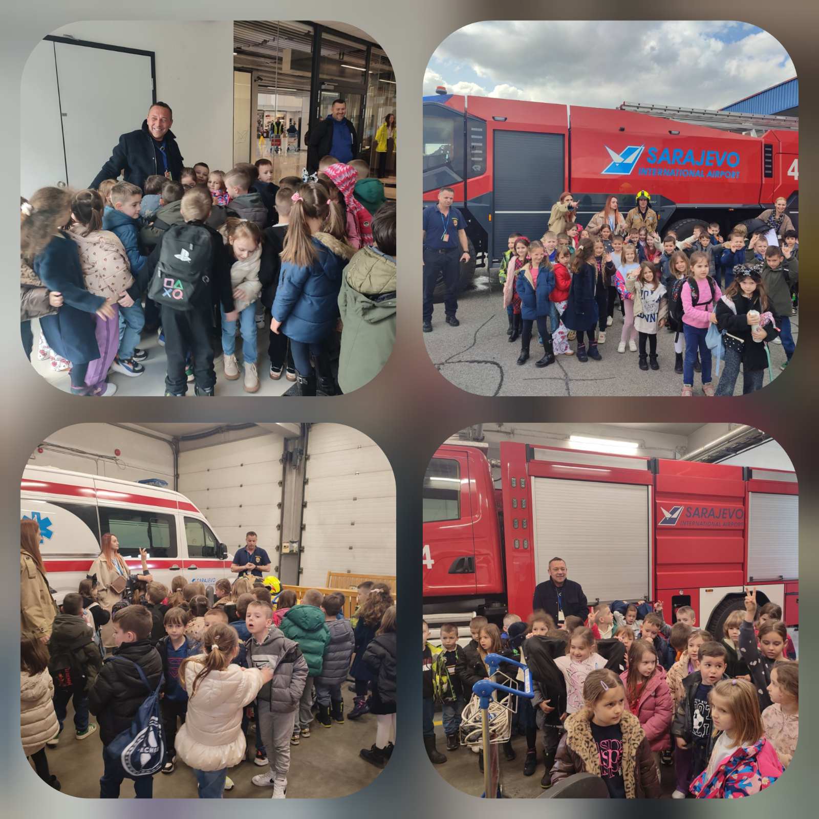 🚑🚒Nakon toga prošli smo kroz čekaonice te izašli na pistu, gdje smo proveli najviše vremena. Djeca su s oduševljenjem posmatrala slijetanje i polijetanje aviona, kao i rad vatrogasne jedinice i službe hitne pomoći na aerodromu.