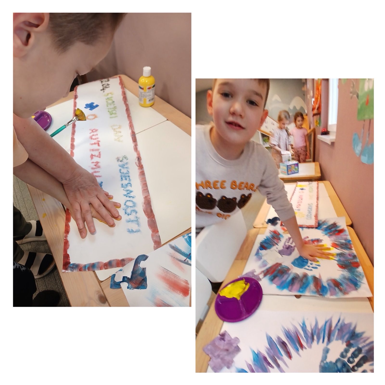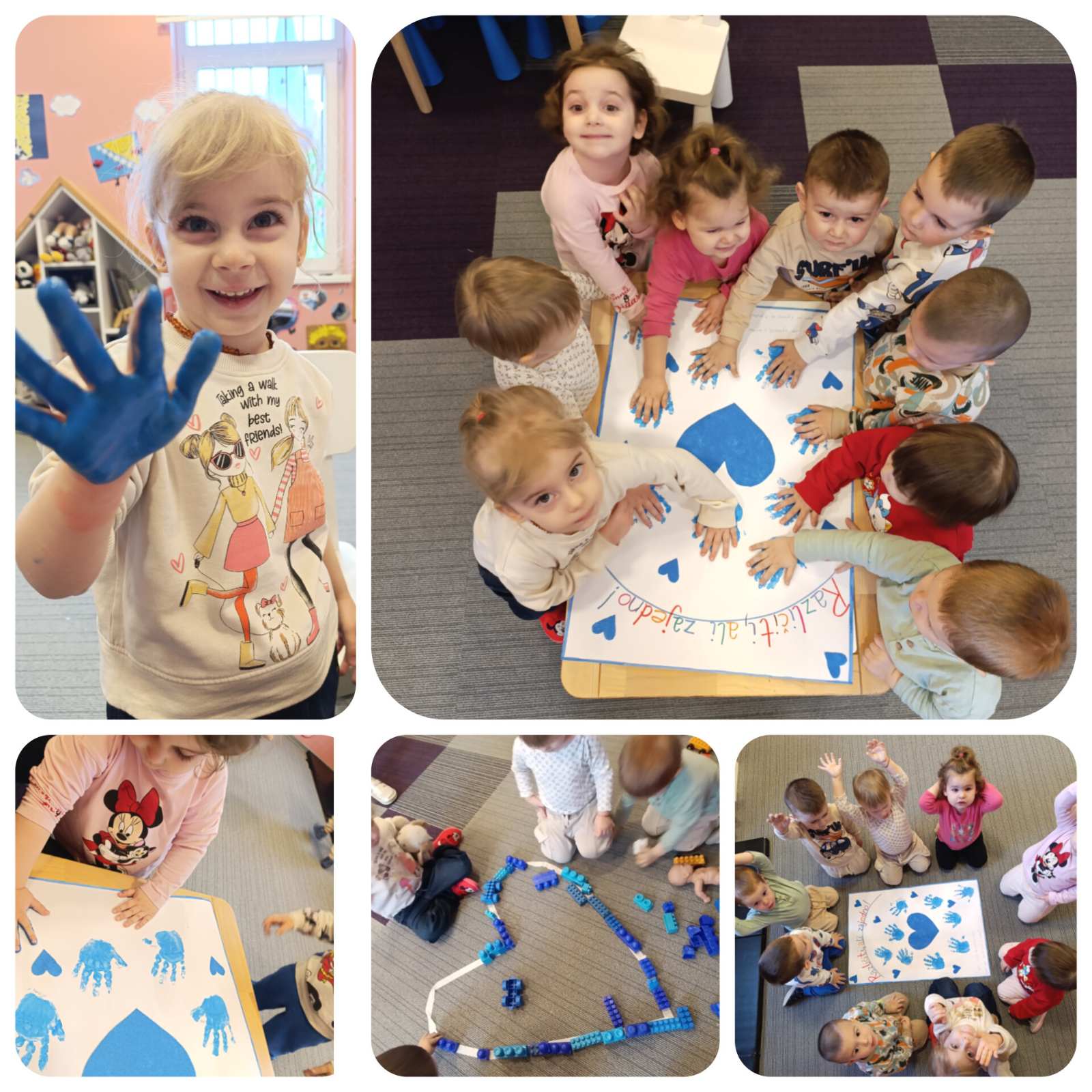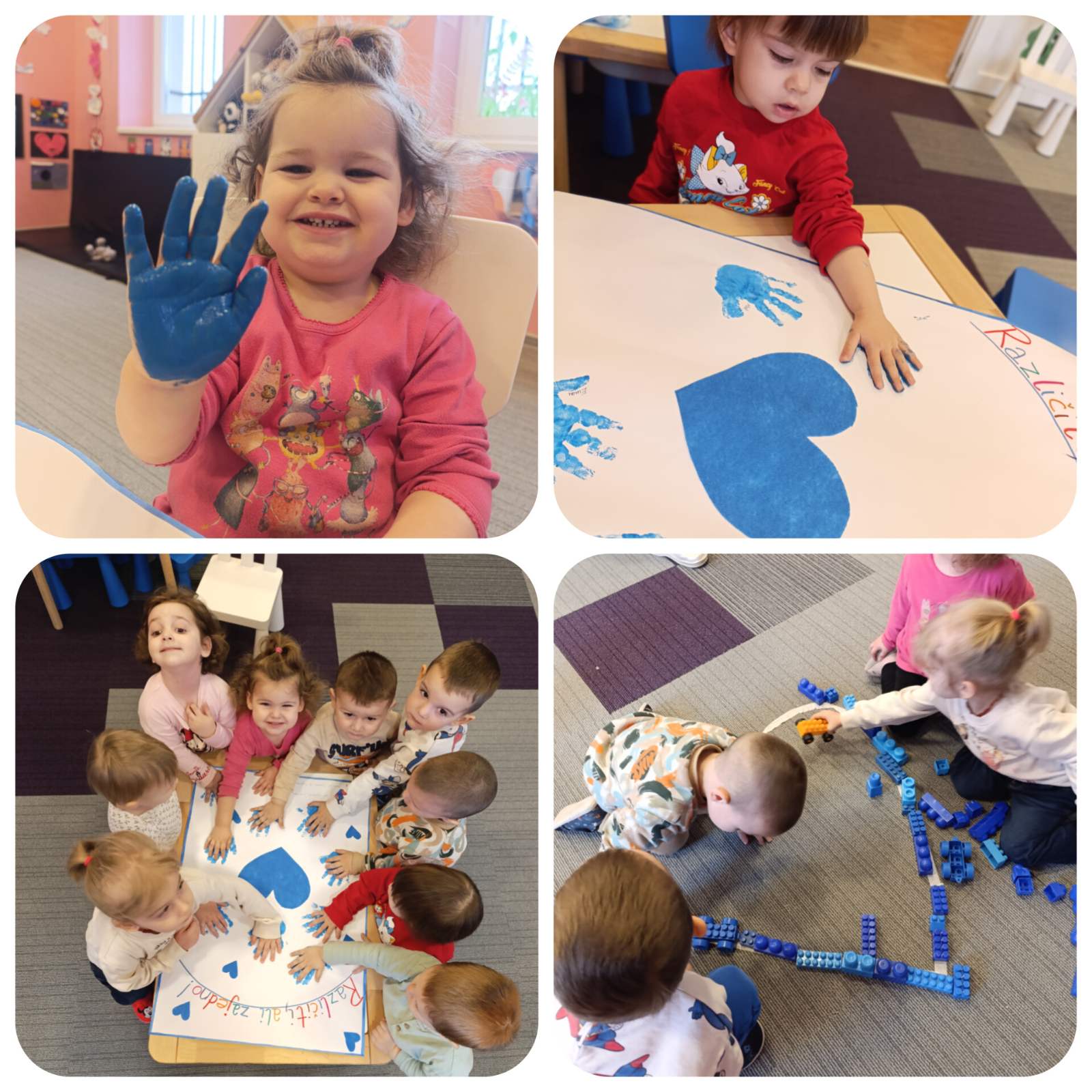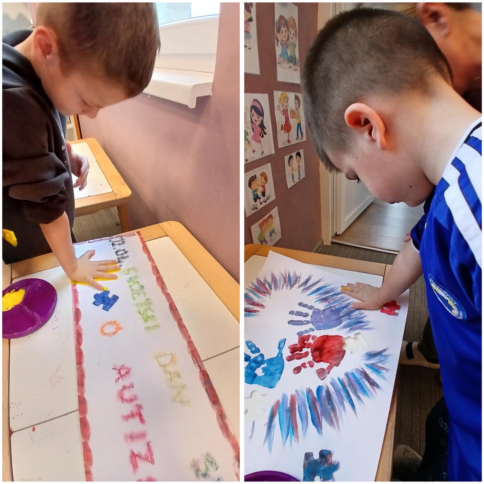 💙 U radu s djecom iz dvije mješovite odgojne grupe (od 6 mjeseci do 3 godine i od 3 godine do polaska u školu), kroz igru, pokret i kreativne aktivnosti, mališani su na svoj način učili da smo svi različiti – i baš takvi posebni. Kroz zajednički rad nastao je plakat s otiscima malih ruku koji nosi veliku poruku prihvatanja, prijateljstva i zajedništva.