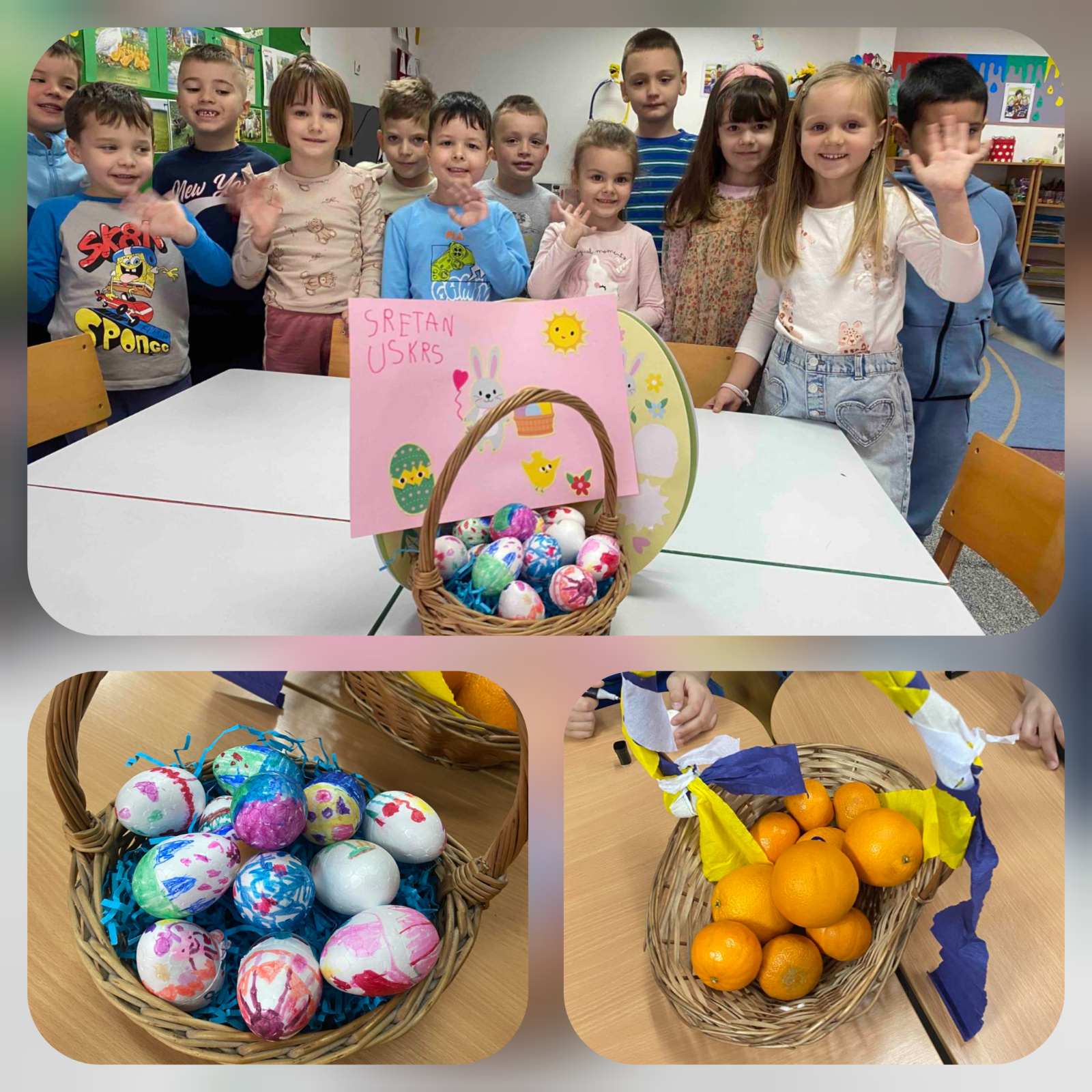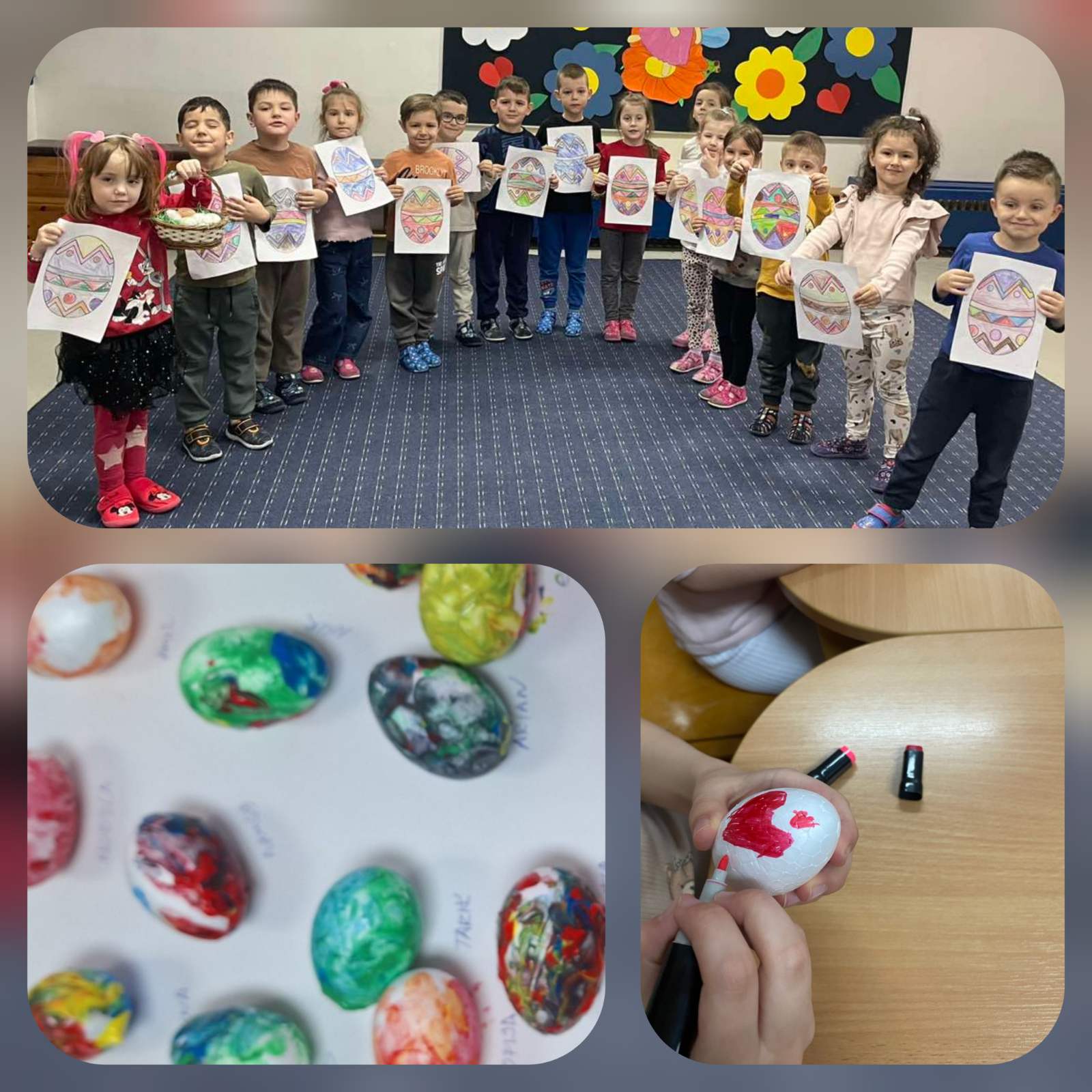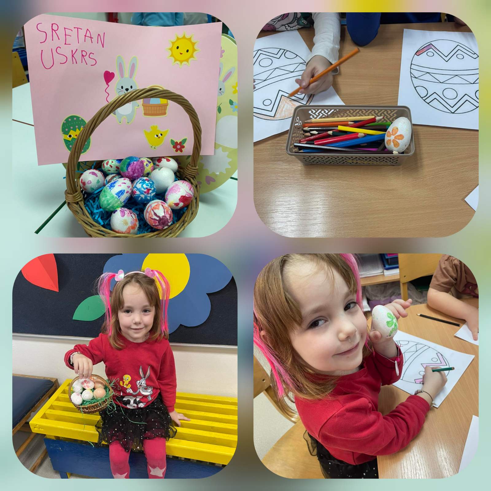 🐣 U vrtiću „Srećica“ s radošću je obilježen i čestitan praznik Uskrs. Djeca su kroz kreativne aktivnosti imala priliku upoznati običaje vezane za ovaj blagdan, te su s posebnim veseljem učestvovala u bojenju jaja koristeći različite likovne materijale i tehnike.
