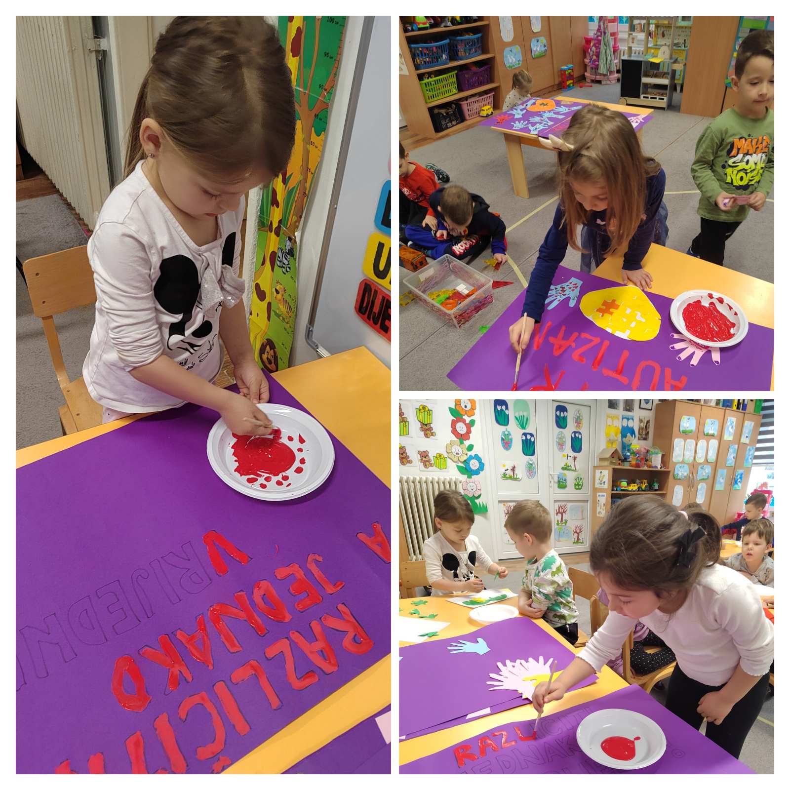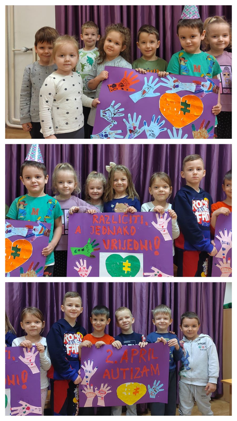 💙 U vrtiću „Labudovi“, u mješovitoj odgojnoj grupi djece od 3 godine do polaska u školu s odgajateljicama Mevlidom Lukovac i Senadom Herak, djeca su s velikim interesovanjem učestvovala u obilježavanju Svjetskog dana svjesnosti o autizmu kroz kreativne aktivnosti. Ukrašavanje ruku u različitim bojama podstaklo je njihovu radoznalost, slobodno izražavanje i međusobnu komunikaciju. Većina djece je s radošću prihvatila zadatak te pokazala spremnost na saradnju i dijeljenje materijala.