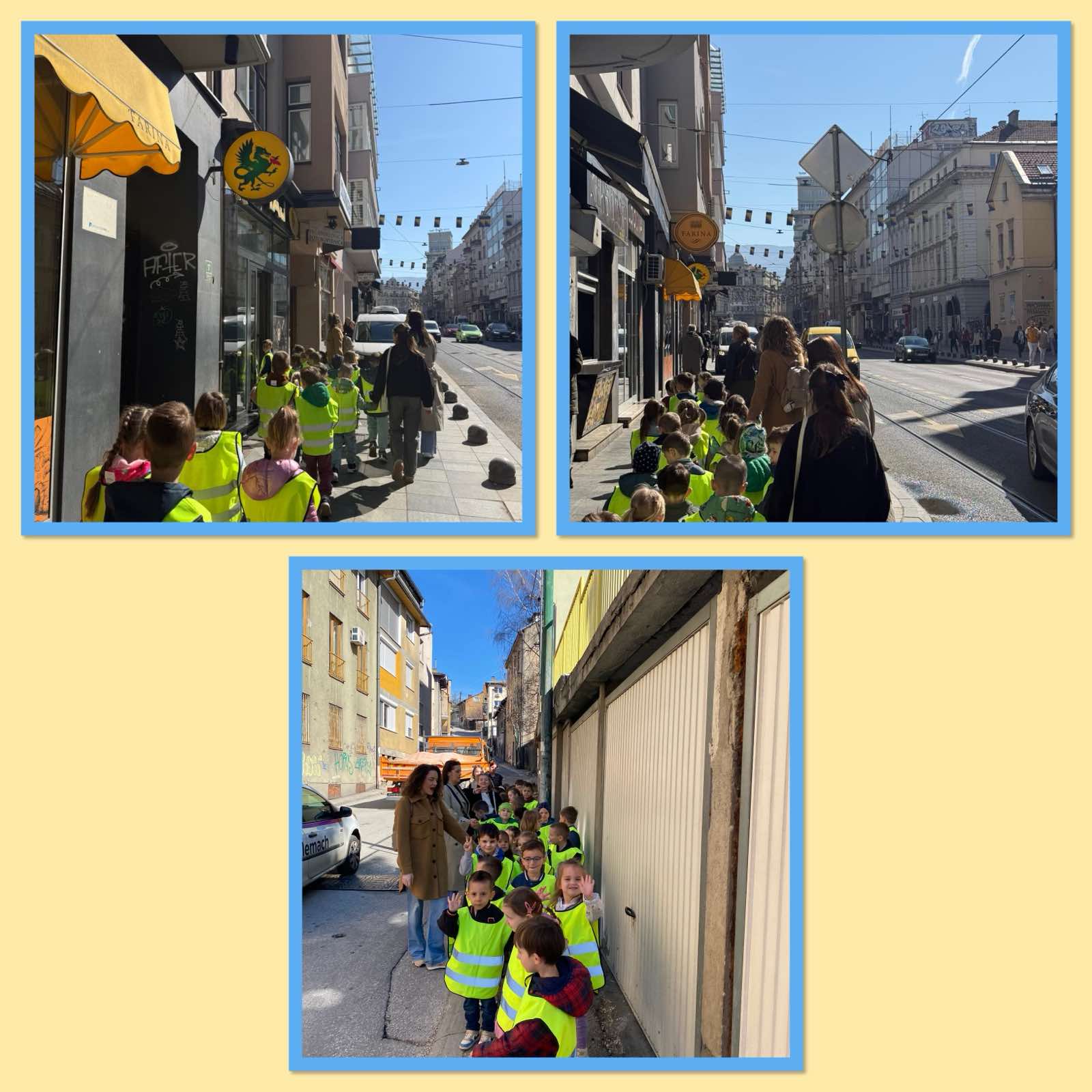 🏙️Nakon toga uslijedila je šetnja starim dijelom grada, gdje su mališani imali priliku upoznati znamenitosti Sarajeva, njegove ulice, trgove i bogatu kulturno-historijsku baštinu. Posmatrajući ambijent Baščaršije i slušajući zanimljive priče, razvijali su osjećaj pripadnosti i ljubavi prema svom gradu. Kratki predah upotpunjen je uživanjem u tradicionalnim ćevapima, jednom od prepoznatljivih jela Sarajeva, što je dodatno obogatilo njihov doživljaj grada.