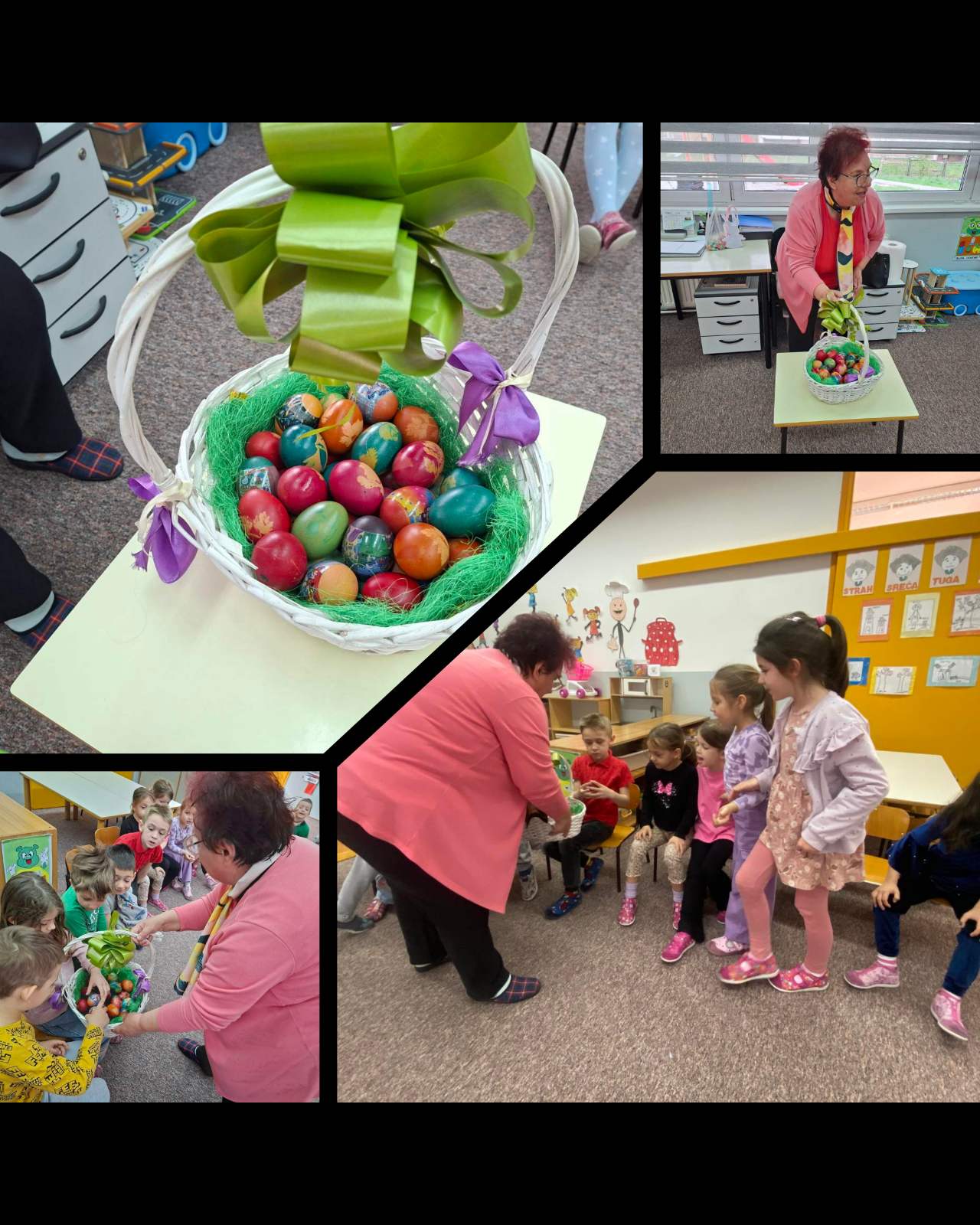 🐣 U vrtiću „Dječiji grad“, u odgojnoj grupi djece u 6. godini života, povodom predstojećeg blagdana Vaskrsa upriličena je posebna i topla posjeta. Djecu je obradovala baka Jagoda, koja im je kroz razgovor i druženje približila običaje obilježavanja ovog blagdana. Sa sobom je donijela jaja i podijelila s djecom kako se Vaskrs proslavlja u njenom domu.