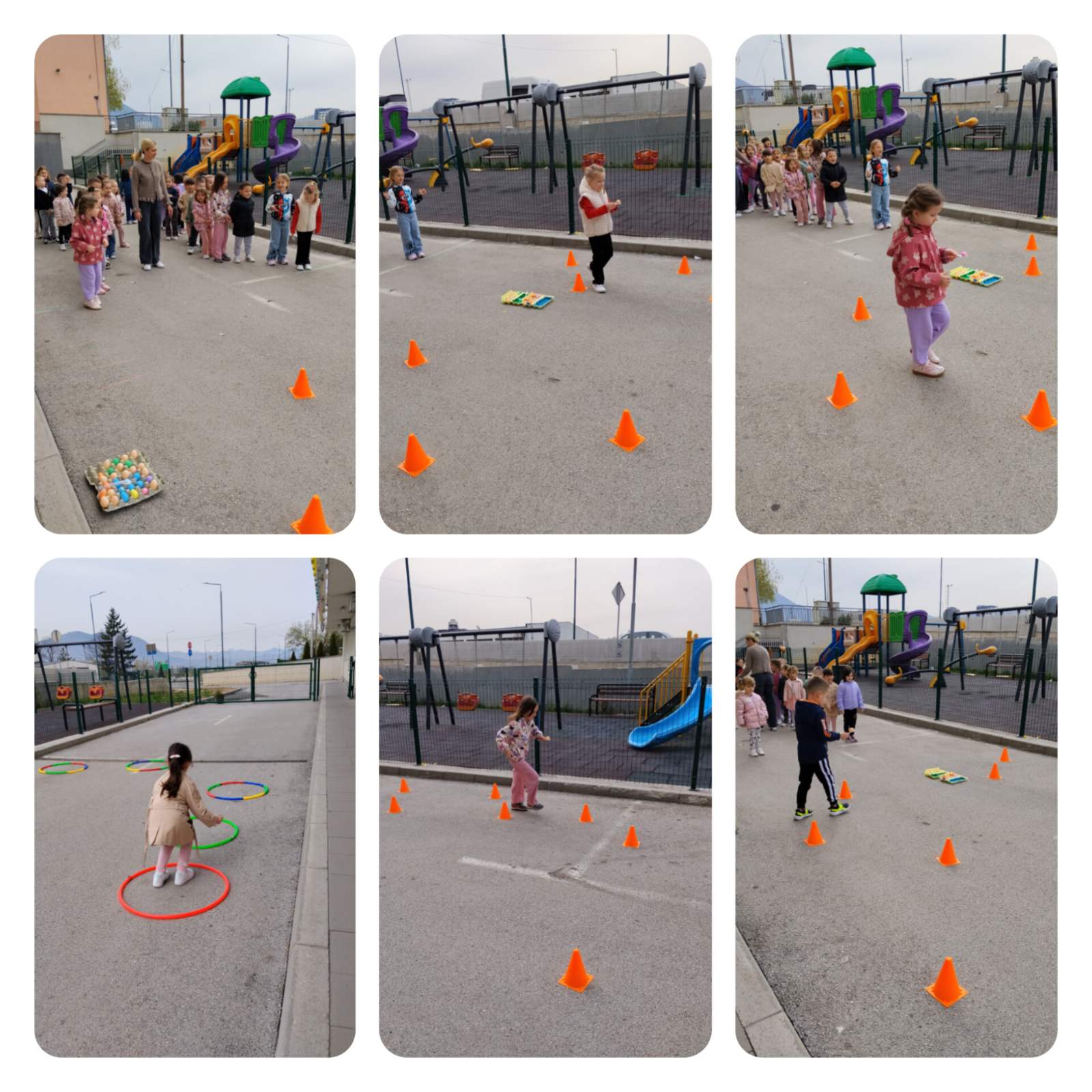 🧺 Dana, 13. aprila u vrtiću “Umihana Čuvidina” mališani su obilježili praznik Vaskrs kroz raznovrsne i radosne aktivnosti na otvorenom. Ispred vrtića organizovan je zanimljiv poligon prepreka, u kojem su djeca s velikim uzbuđenjem učestvovala i pokazala svoju spretnost i snalažljivost.