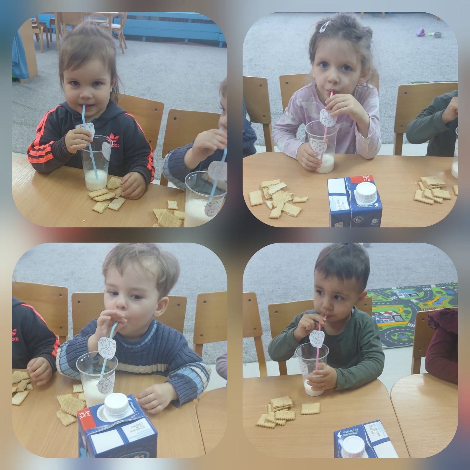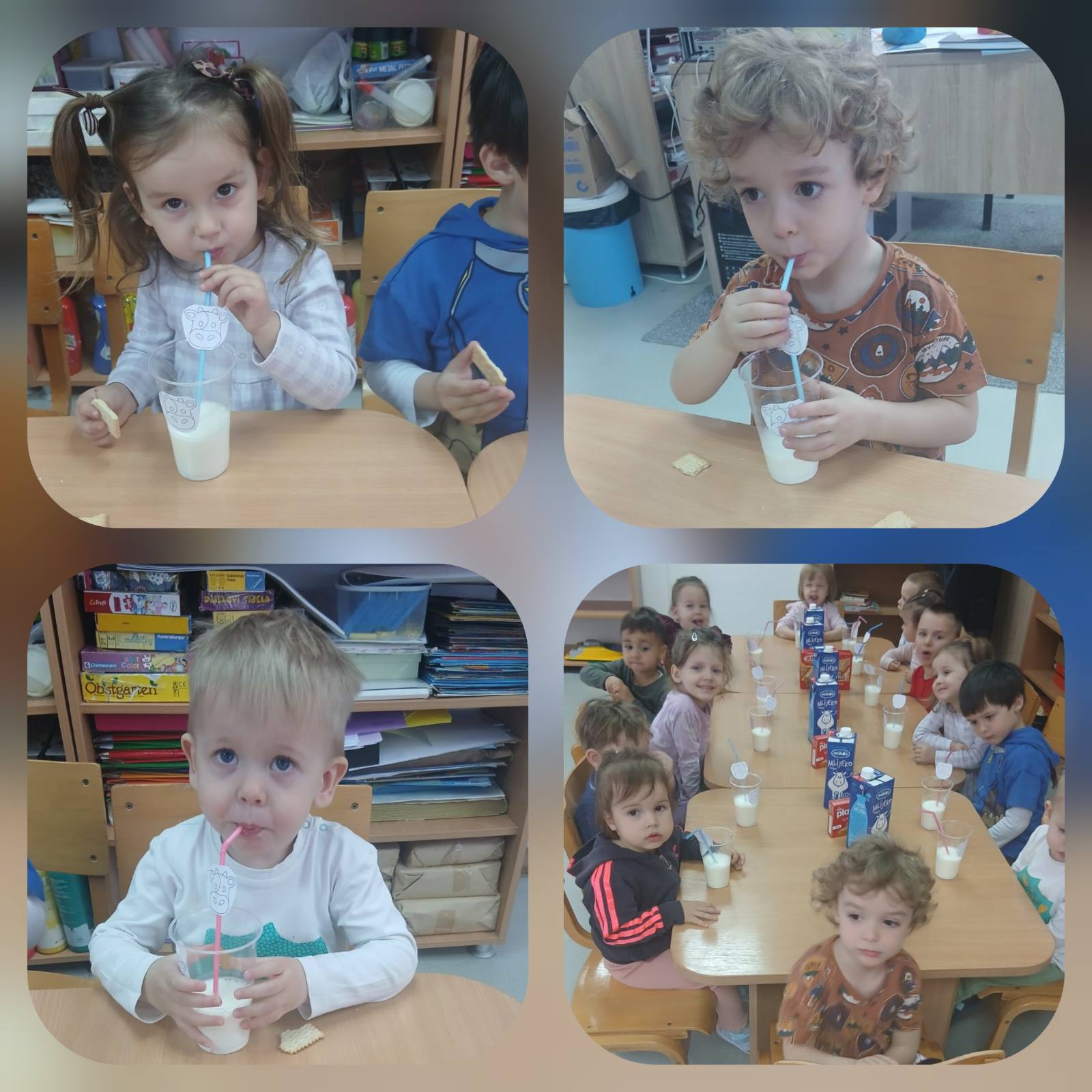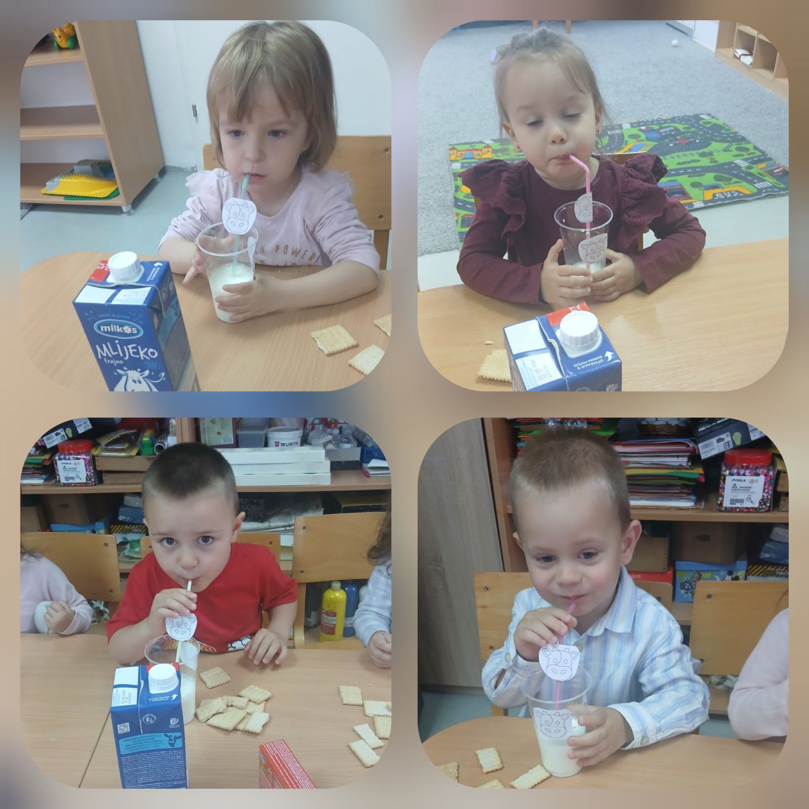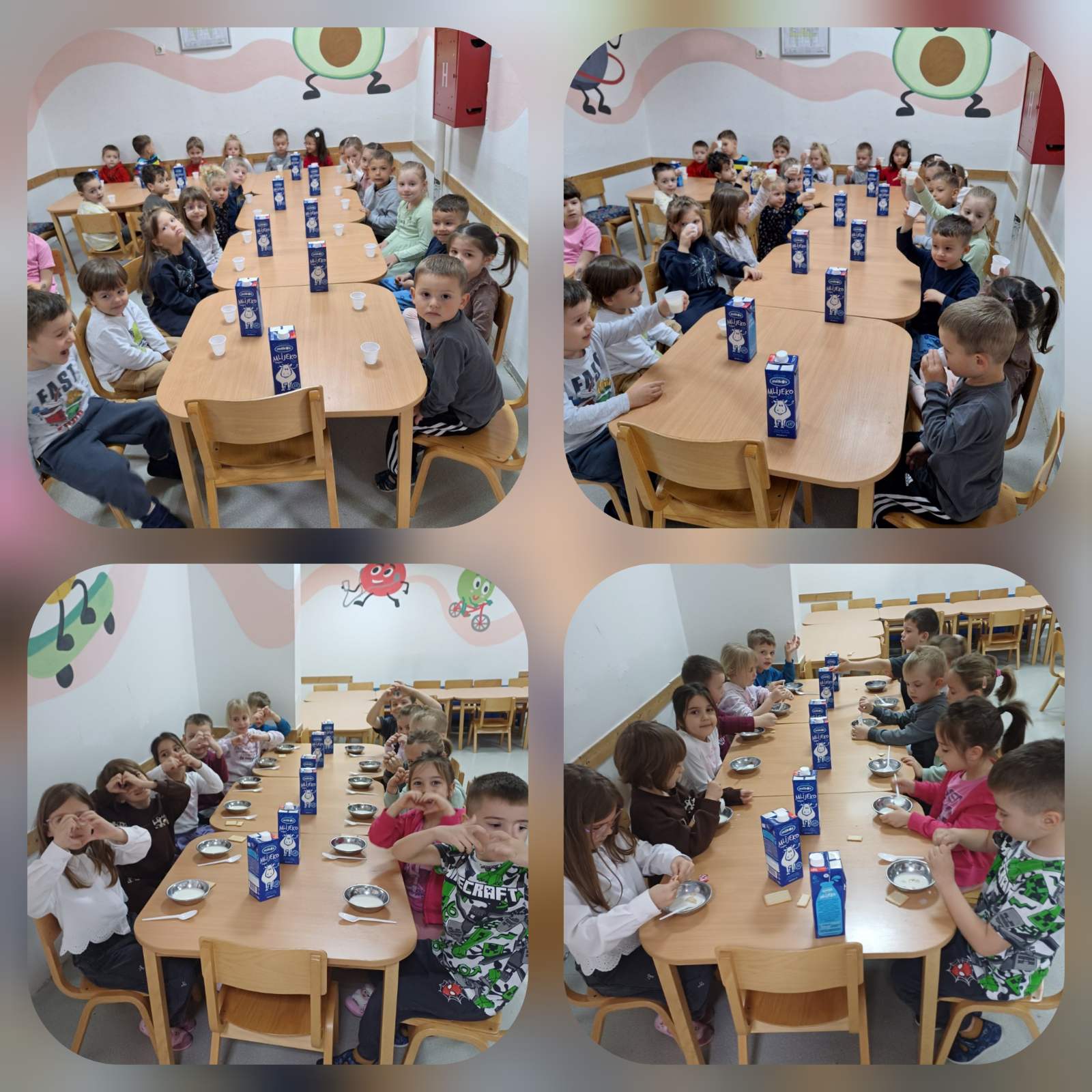 🍪 Nakon edukativnog dijela, uslijedilo je i uživanje – djeca su pila mlijeko uz keksiće, dok su neki birali kombinaciju s pahuljicama. Zadovoljstvo na njihovim licima pokazali su koliko su uživali u ovom zdravom i ukusnom obroku.