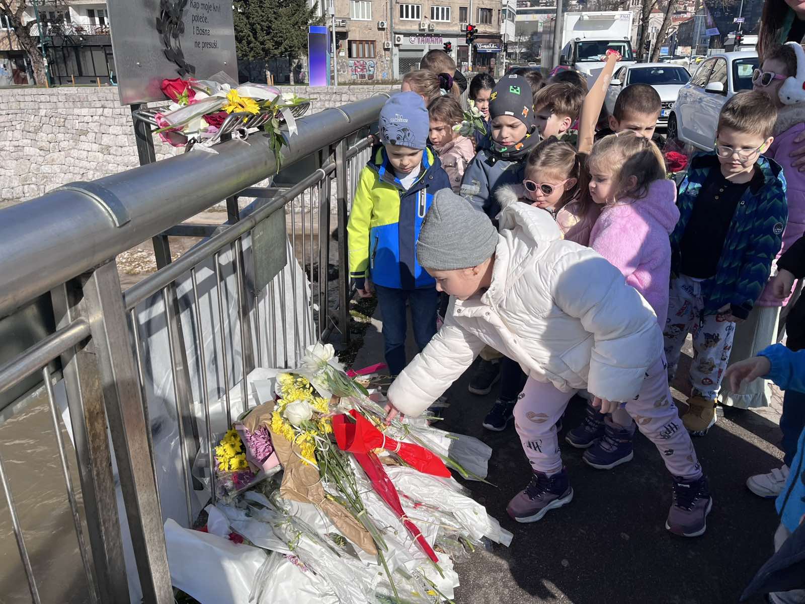 🕊️ Povodom obilježavanja Dana nezavisnosti Bosne i Hercegovine, djeca vrtića „Zvončić“ posjetila su Most Suade i Olge. Tom prilikom položili su cvijeće na Spomen-ploču i,