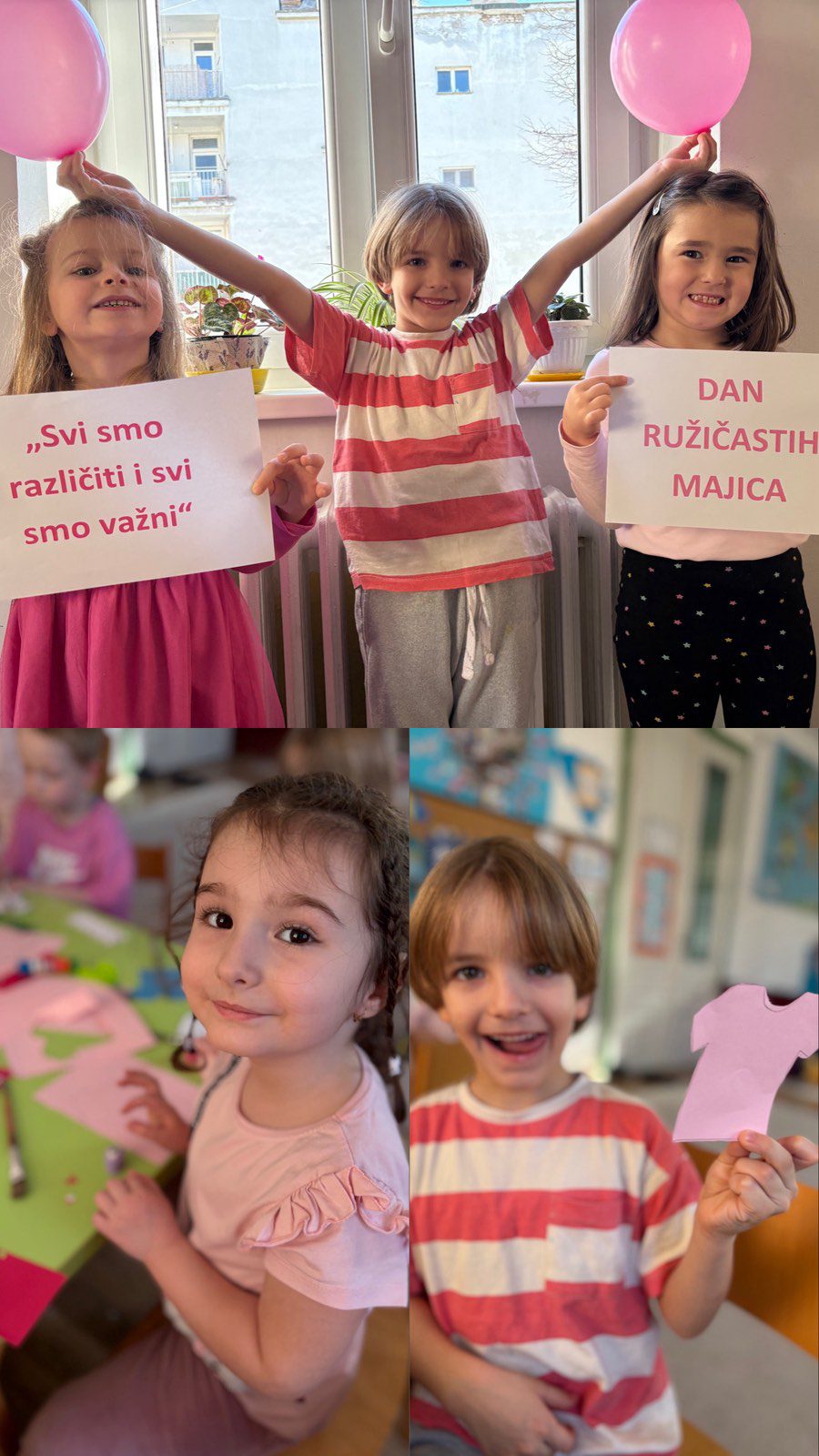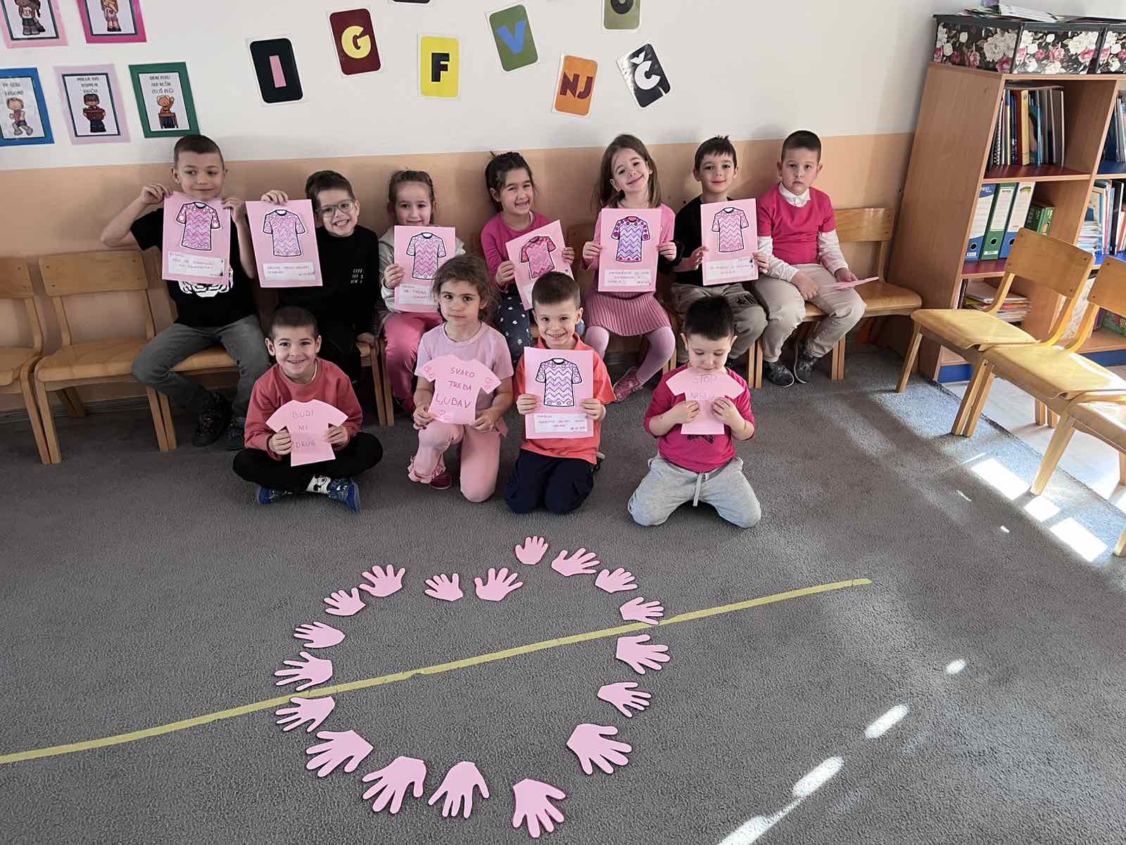 💗 U vrtiću “Slavuj”, u odgojnoj grupi djece u 6. godini života, obilježen je 👚Dan ružičastih majica. Djeca su kroz kreativne aktivnosti i razgovore učila